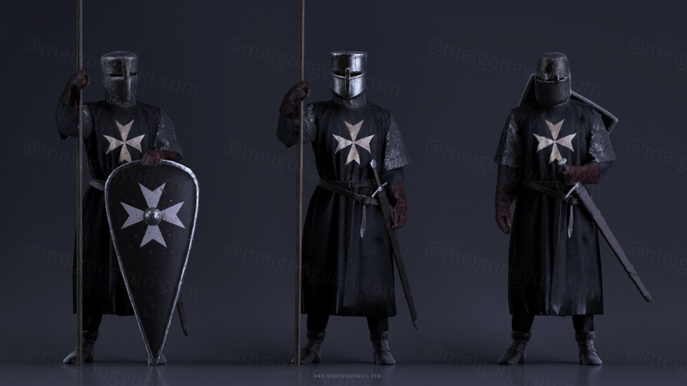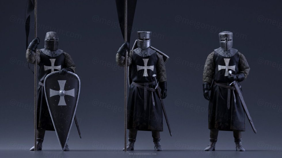 这个包包括200 多个元素:3 个 Rigged Standing Knights、 3 个 Rigged Knight Riders、Rigged Horse。18个骑手姿势,33个新站立骑士姿势,36个原始站立骑士,30个农民姿势(未装配),17个中世纪马姿势。50 多个旗帜、4 把剑、6 个头盔、10 个 3D 泥浆飞溅等等。资产从低到高不等。A姿势和T姿势。格式:混合、OBJ、FBX、UE