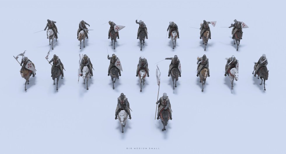 装备骑士、马匹、农民、武器、盔甲、旗帜