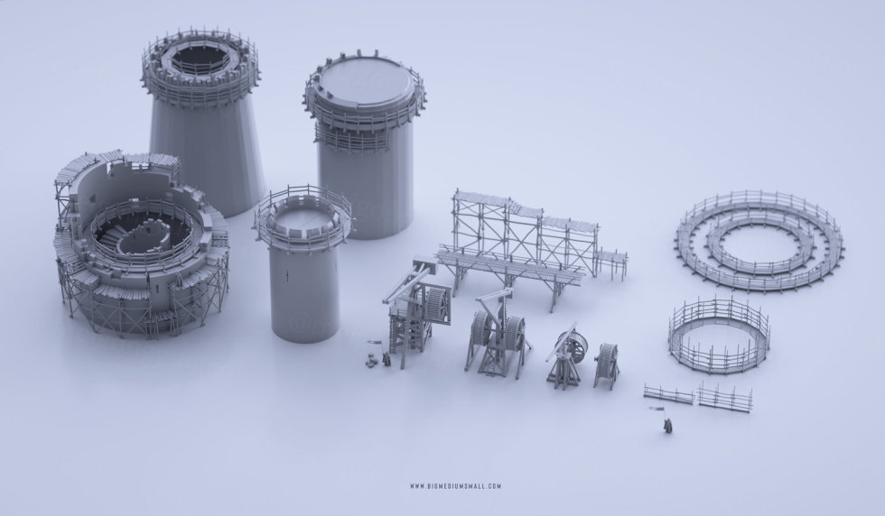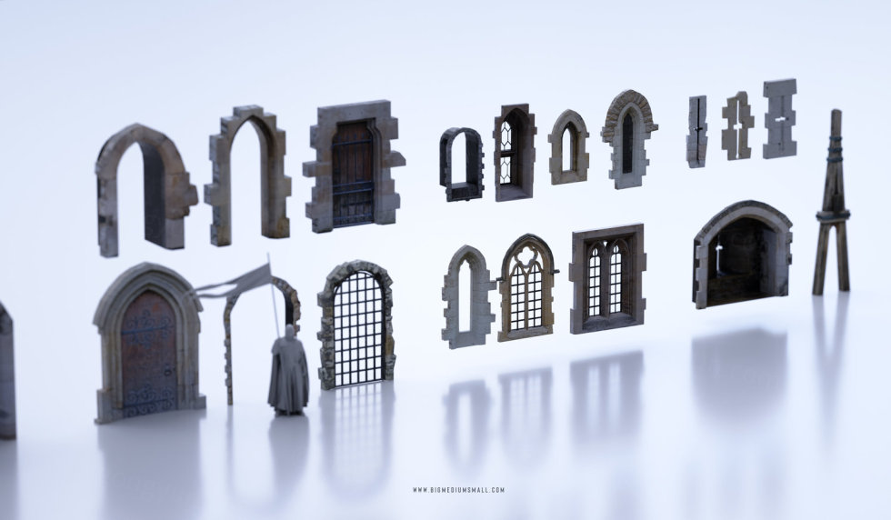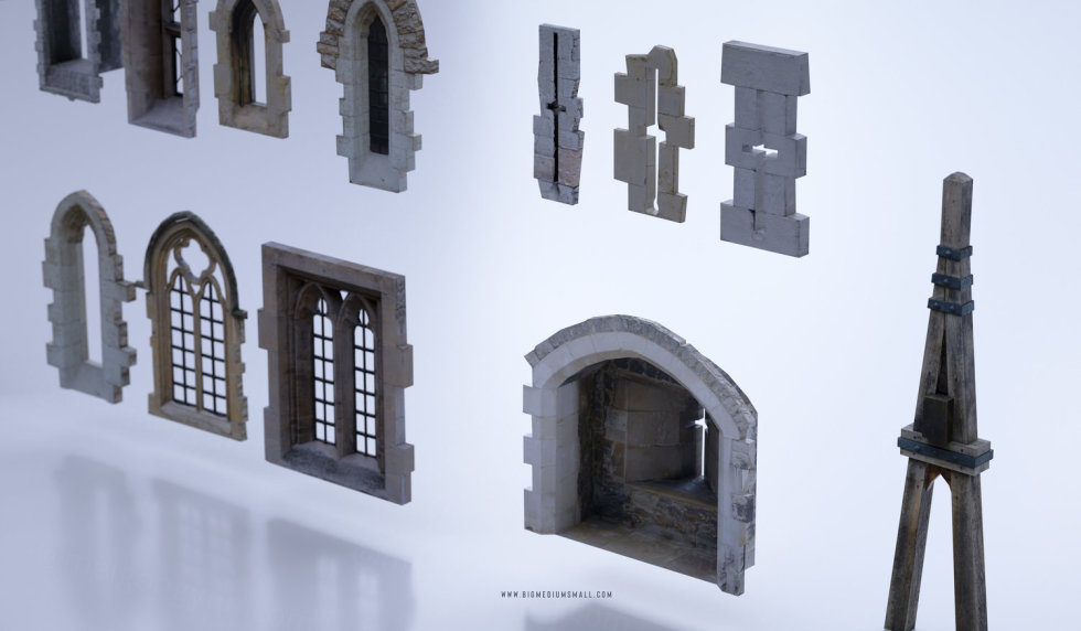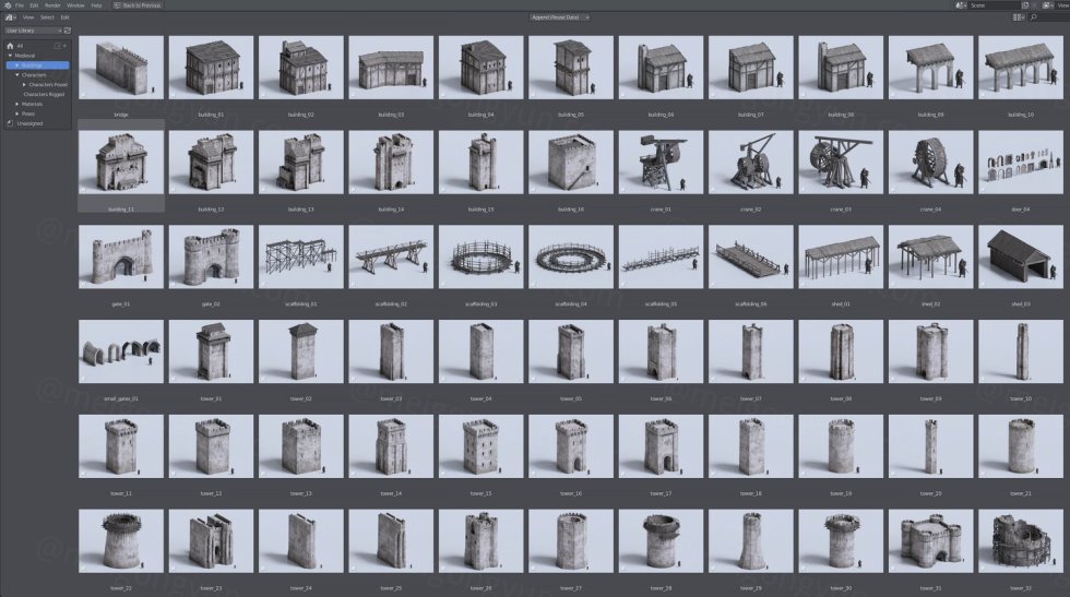 建立独特的世界,从魔法王国到反乌托邦帝国 这个包包括 100 多个元素:定制城堡、模块化塔、高度逼真的门窗。所有模型都是低聚的。建筑物现在有 UV,高度详细的复杂自定义材料设置(Blender,UE)。还提供了具有简单烘焙 PBR 材料的建筑物。格式:混合、OBJ、FBX、UE。
