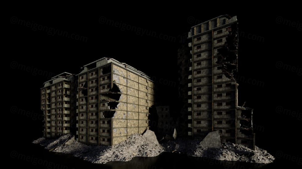 创造冲突后的毁灭性环境,即将到来的世界末日的可怕世界,或与机器交战的不幸场景。该套件的建筑物被撕裂,其基础设施暴露在外,每个内部和子细节都与悲惨故事、毁灭性结构和超现实纹理交织在一起。