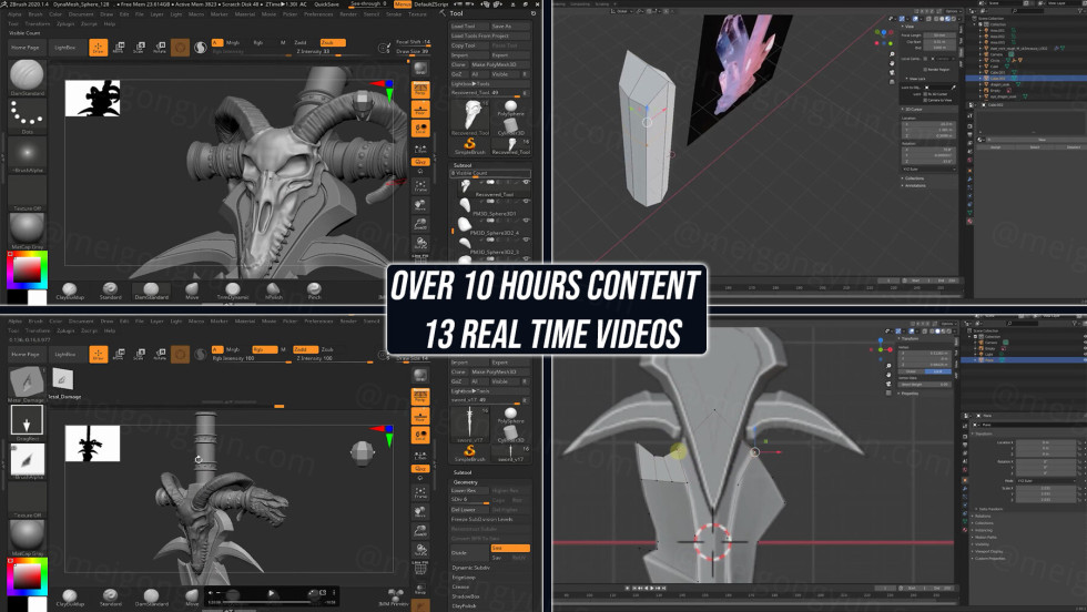 我们使用搅拌器进行建模,Zbrush 用于雕刻,物质用于纹理,搅拌器用于着色、照明、渲染和合成,所以如果你想学习新技术,这个过程视频将对你有所帮助