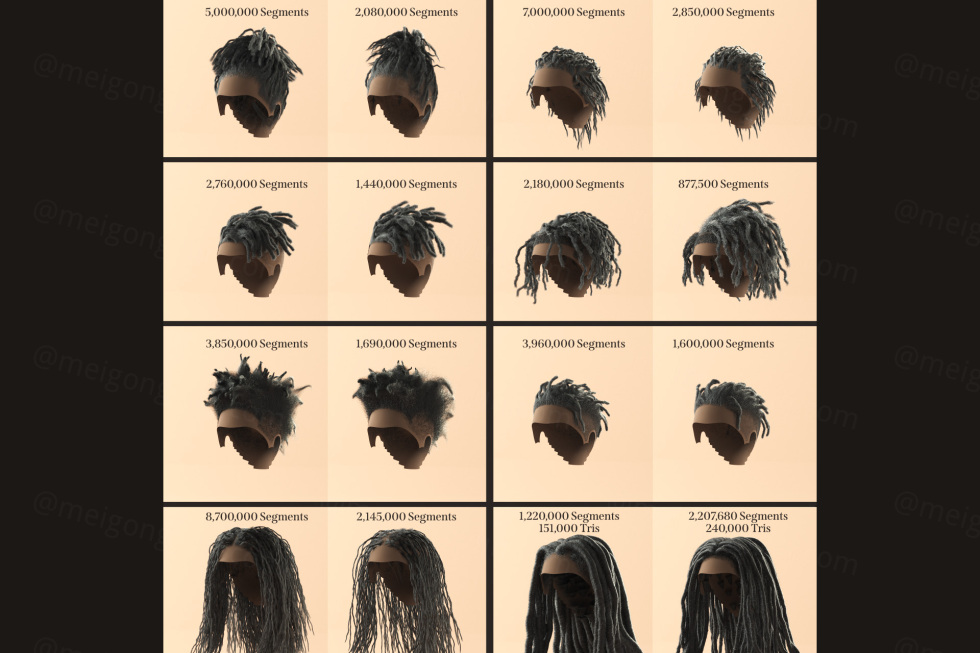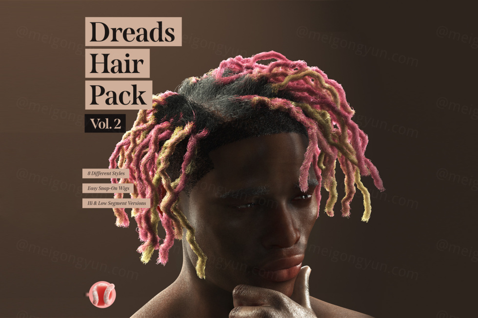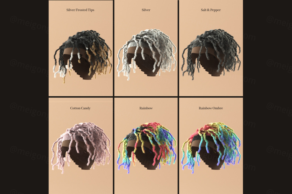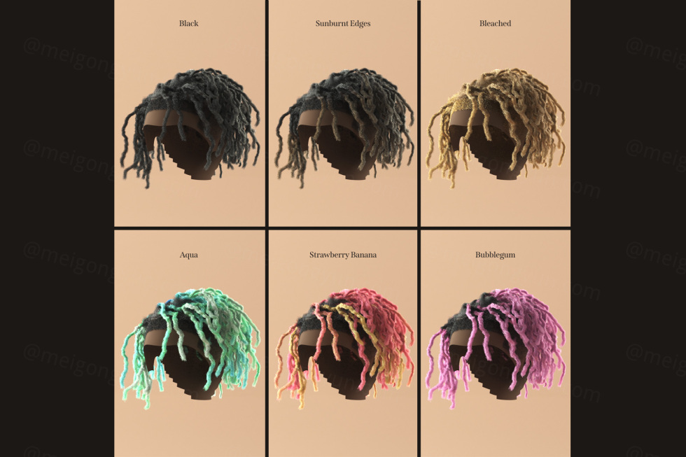 -8 更多不同的长发绺样式,仅使用 C4D 的头发对象(无头发插件) - 只需点击几下,假发就会扣合在模特的头上 - 每个假发的高低段版本 -高度逼真 - 包括 13 种辛烷头发材料(黑色、漂白、磨砂发梢、晒黑、水绿色、草莓香蕉、泡泡糖、银色发梢、银、盐和胡椒、棉花糖、彩虹、彩虹渐变色) 包括简短的教学视频