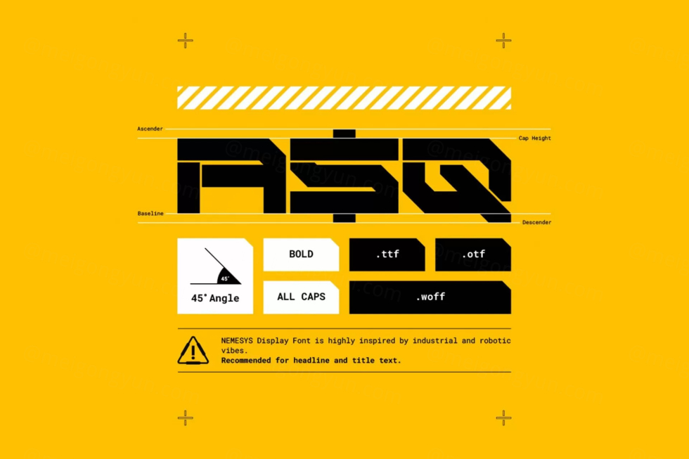 NEMESYS 是一种未来主义的显示字体,高度受到工业和机器人氛围的启发。字体的设计增强了项目的力量和灵感。它是标题、广告牌、杂志、网站、标题、海报、品牌、缩略图、T 恤设计、街头服饰设计、创意徽标或任何需要未来感的项目的理想选择。