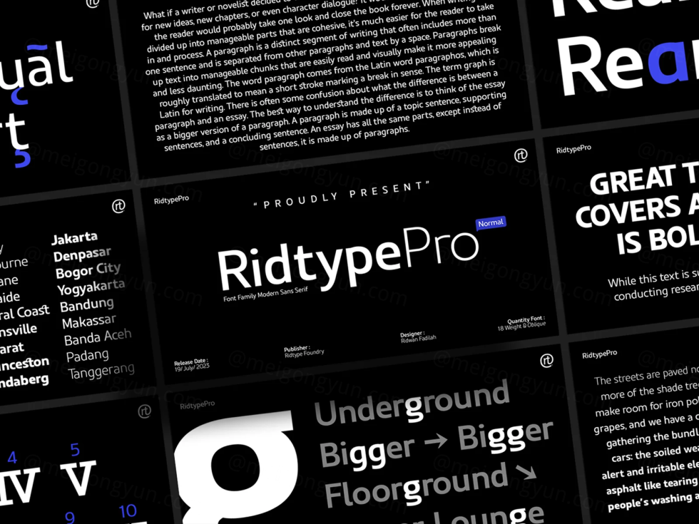 高质量现代品牌设计海报杂志排版无衬线英文字体 Ridtype Pro Font Family