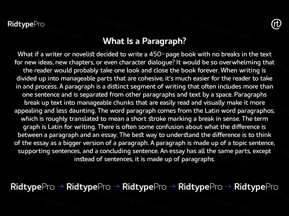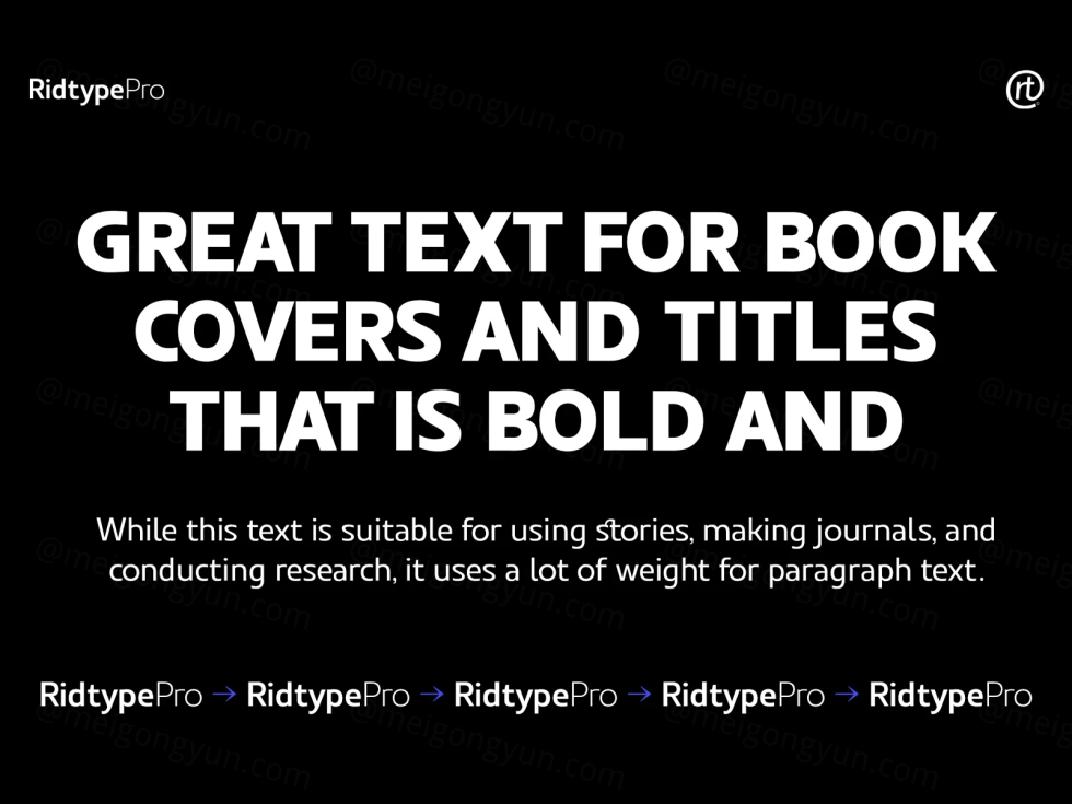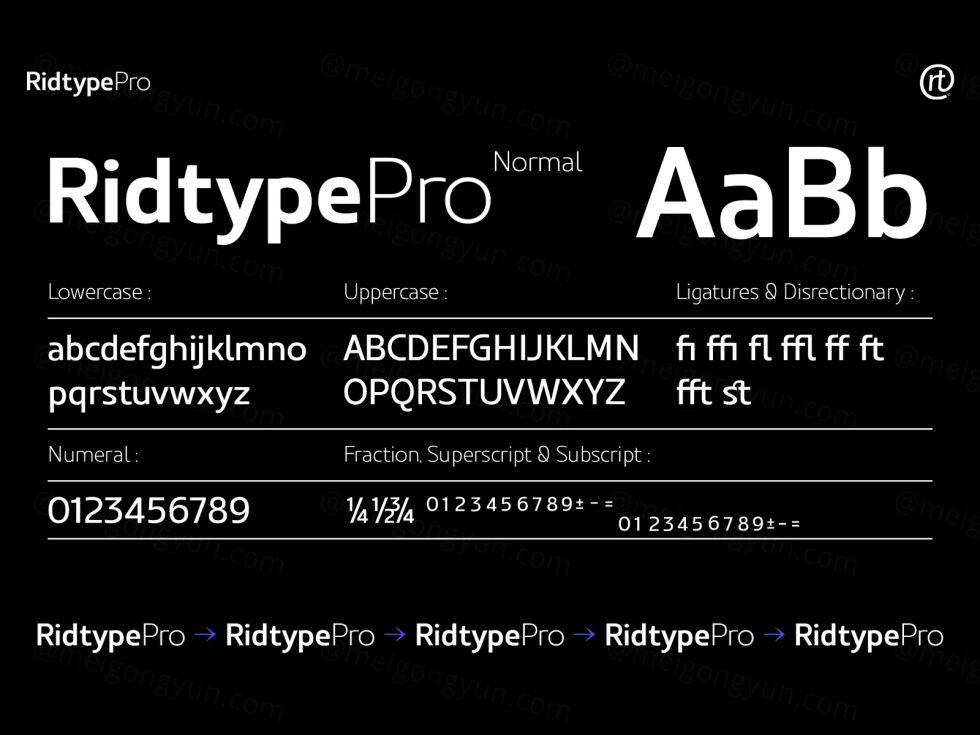 Ridtype 字体是根据字母设计和粗细类型创建的,以便在所有角色中兼容。它适用于所有业务领域,适合现代和经典业务实施的支持者。