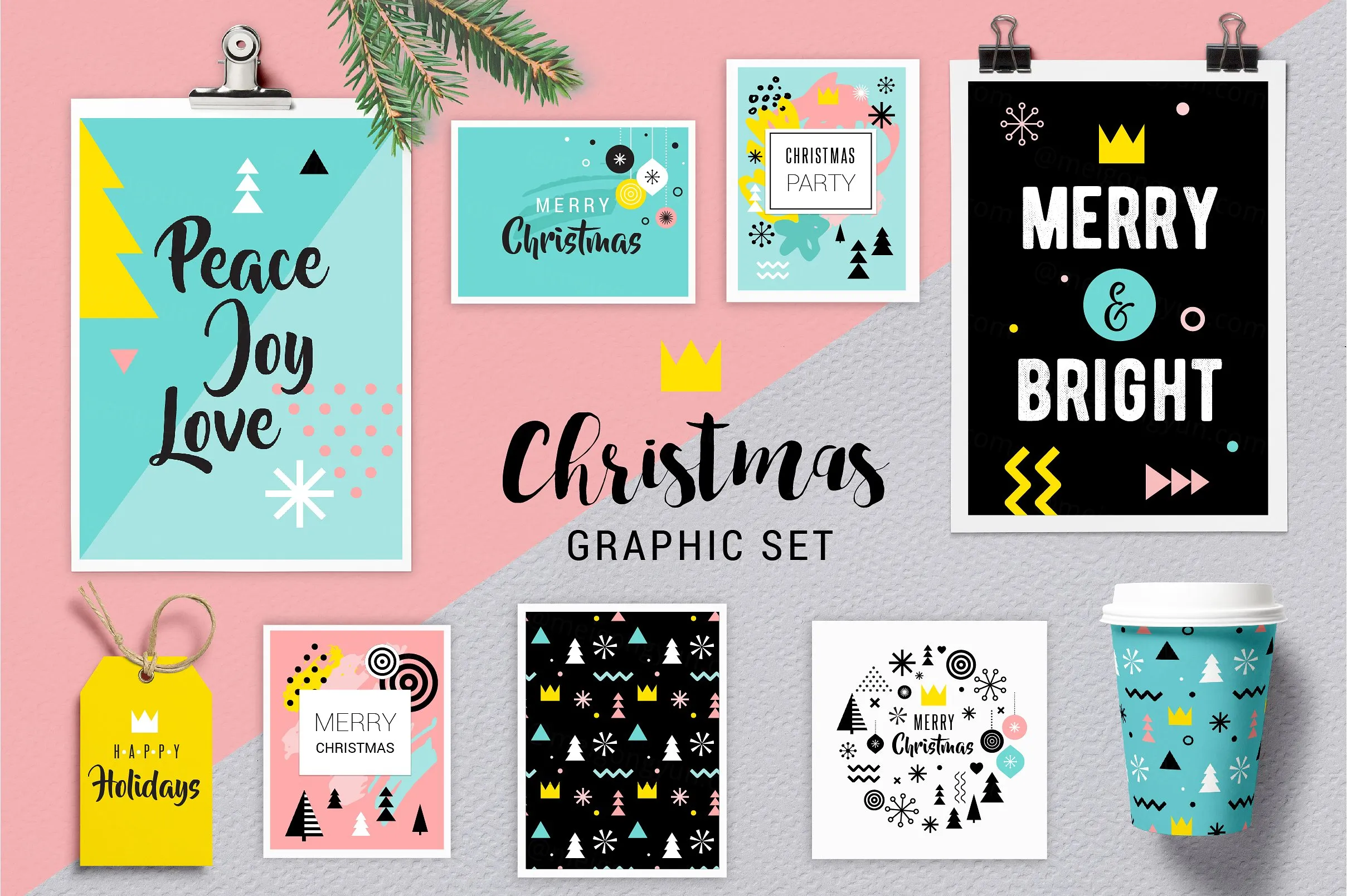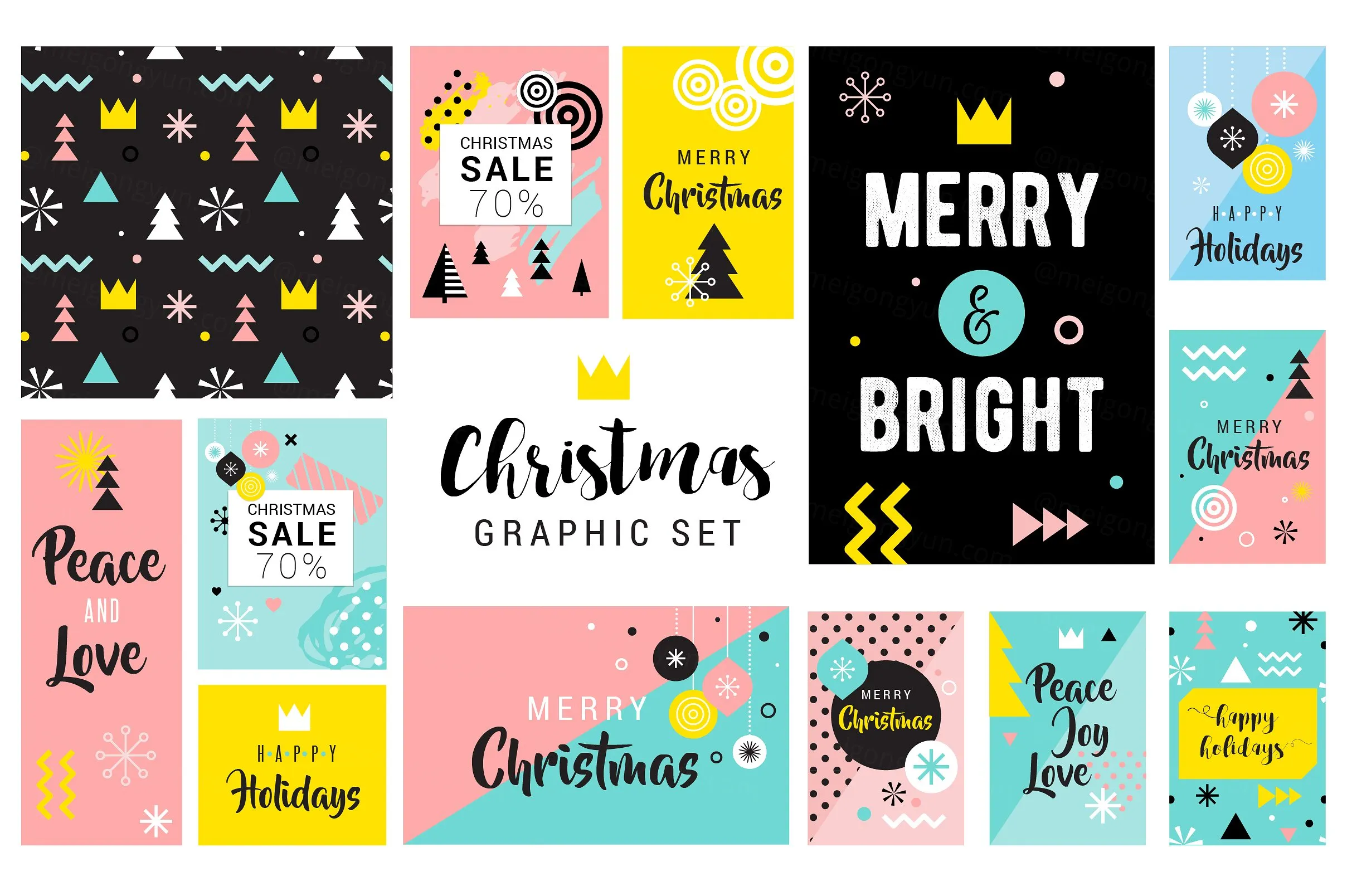 孟菲斯风格设计元素Geometric Christmas graphic set #1062166