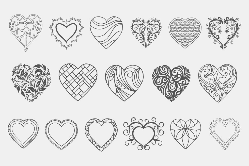 这组装饰心包括PSD,AI和EPS文件格式的17个矢量项目,因此可以在Photoshop或Illustrator中轻松自定义。 每个设计都是手绘并转换为矢量格式,因此您可以获得两全其美的效果。真正的手工制作设计,可以缩放和重新着色而不会有任何质量损失。 这些矢量心脏非常适合情人节礼物,电子贺卡,假日销售等。