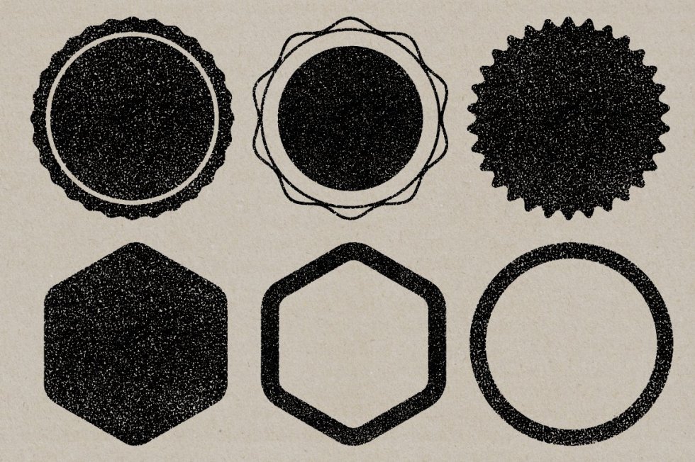 30 个单独的图章纹理,以 Illustrator 8.0 eps 文件形式提供,与大多数矢量和位图应用程序(如 Adobe Illustrator 和 Photoshop)兼容。