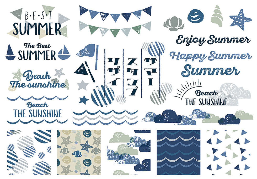 小清新日系和风蓝色风格夏日海滩免扣矢量素材