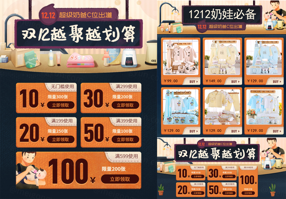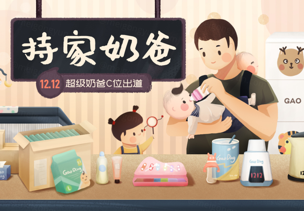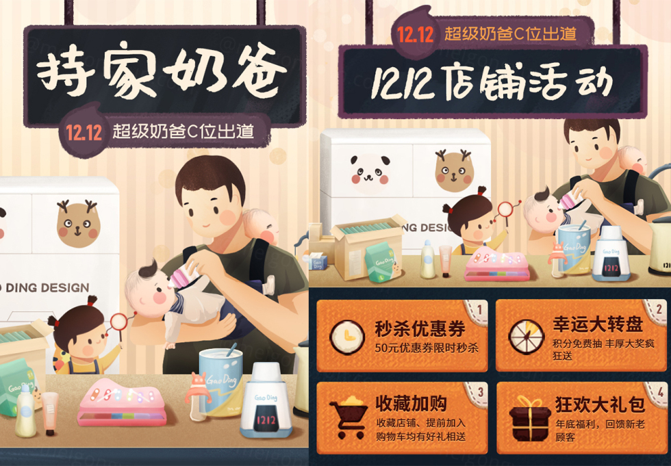 【持家奶爸 C位出道】淘宝双12亲亲节全套电商海报主图PSD素材