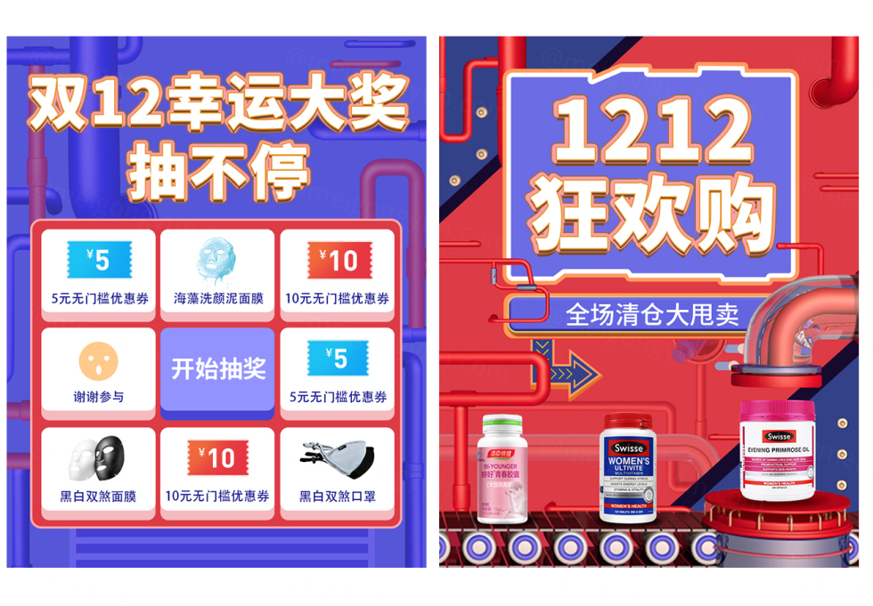 双12C4D渲染场景电商活动页面全套PSD模版素材