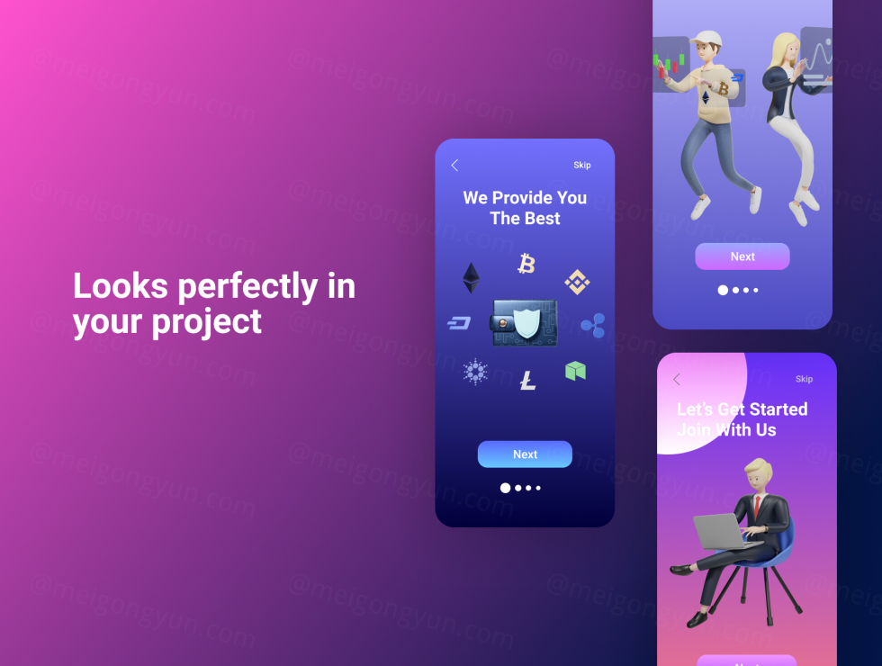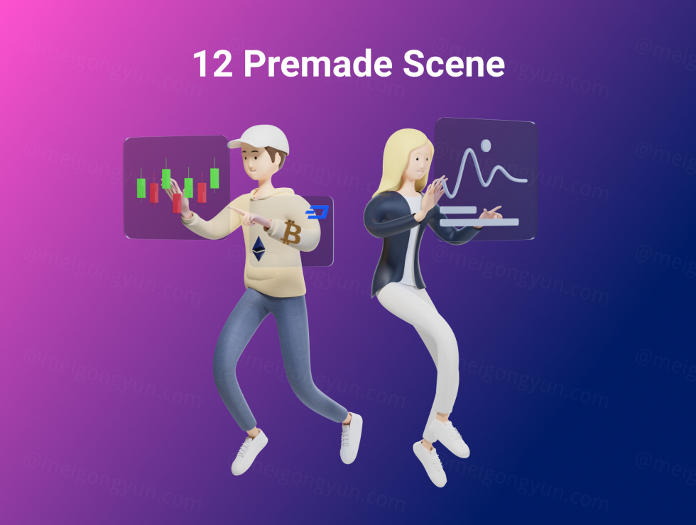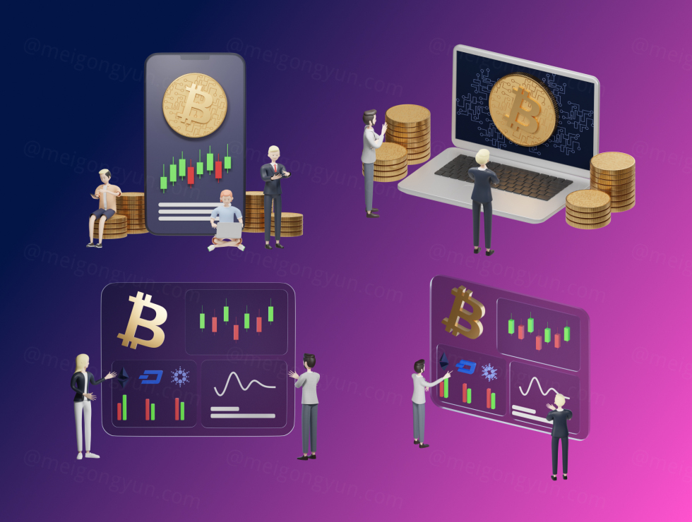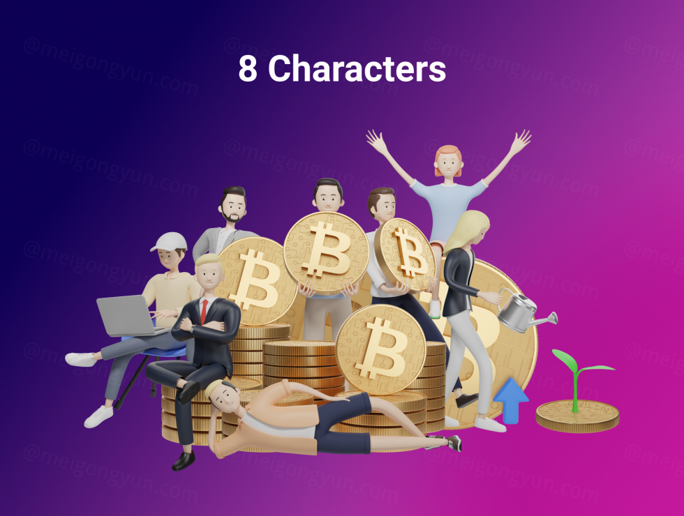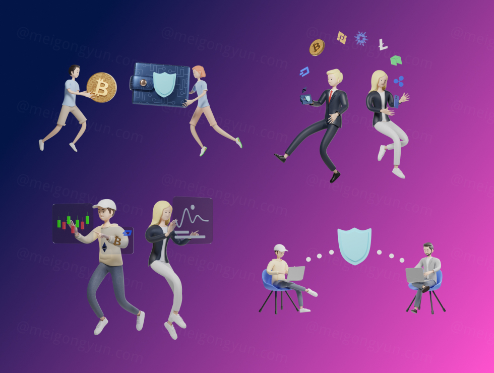 用于您的网站、应用程序或公司的 3D 角色加密插图使您的图形更有趣以吸引更多观众
