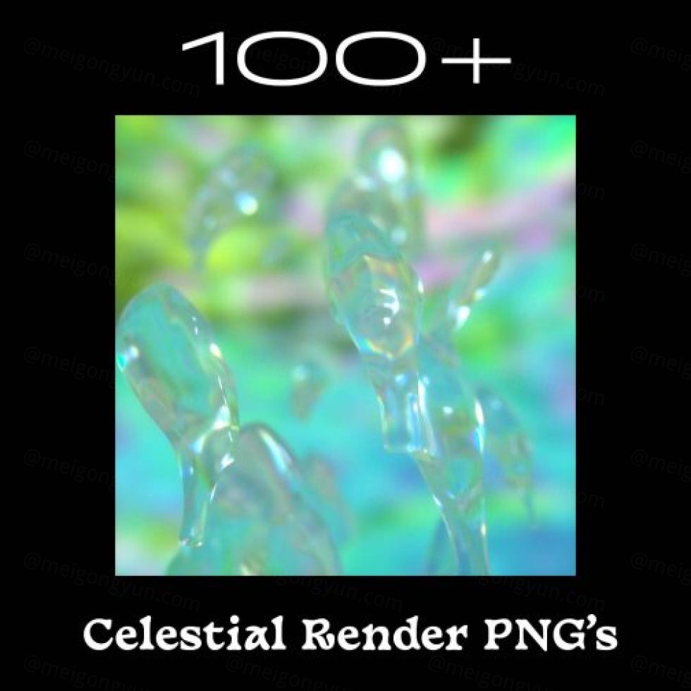 恐惧渲染卷。4 - 天人。全新的渲染。该软件包包含 100 多个 Y2K 风格抽象渲染的 PNG 文件。由 40 个独特的“生物”组成,每一个都有完全不同的形状和颜色。每个生物都有 3 个版本*:透明、带背景和景深滤镜**。每个渲染都可以在 PHOTOSHOP 等软件中非常容易地进行操作,并通过颜色校正调整来满足您的渲染需求。