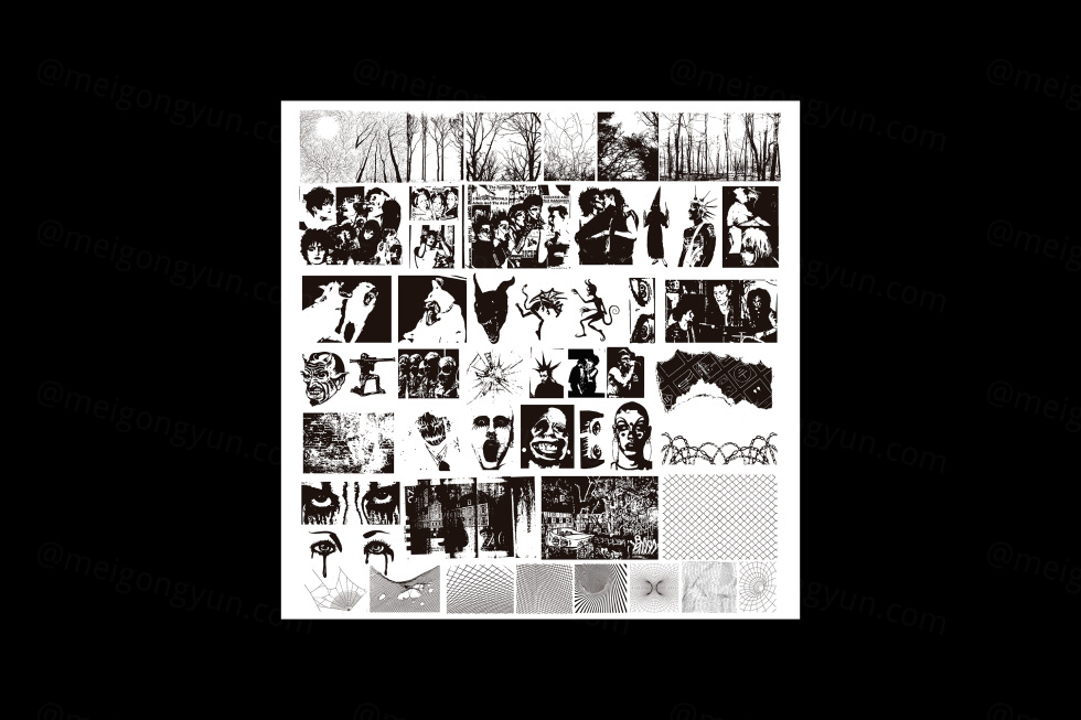 新复古酸性艺术赛博朋克恐怖森林电缆涂鸦铁链素材合辑 GORE VECTOR PACK