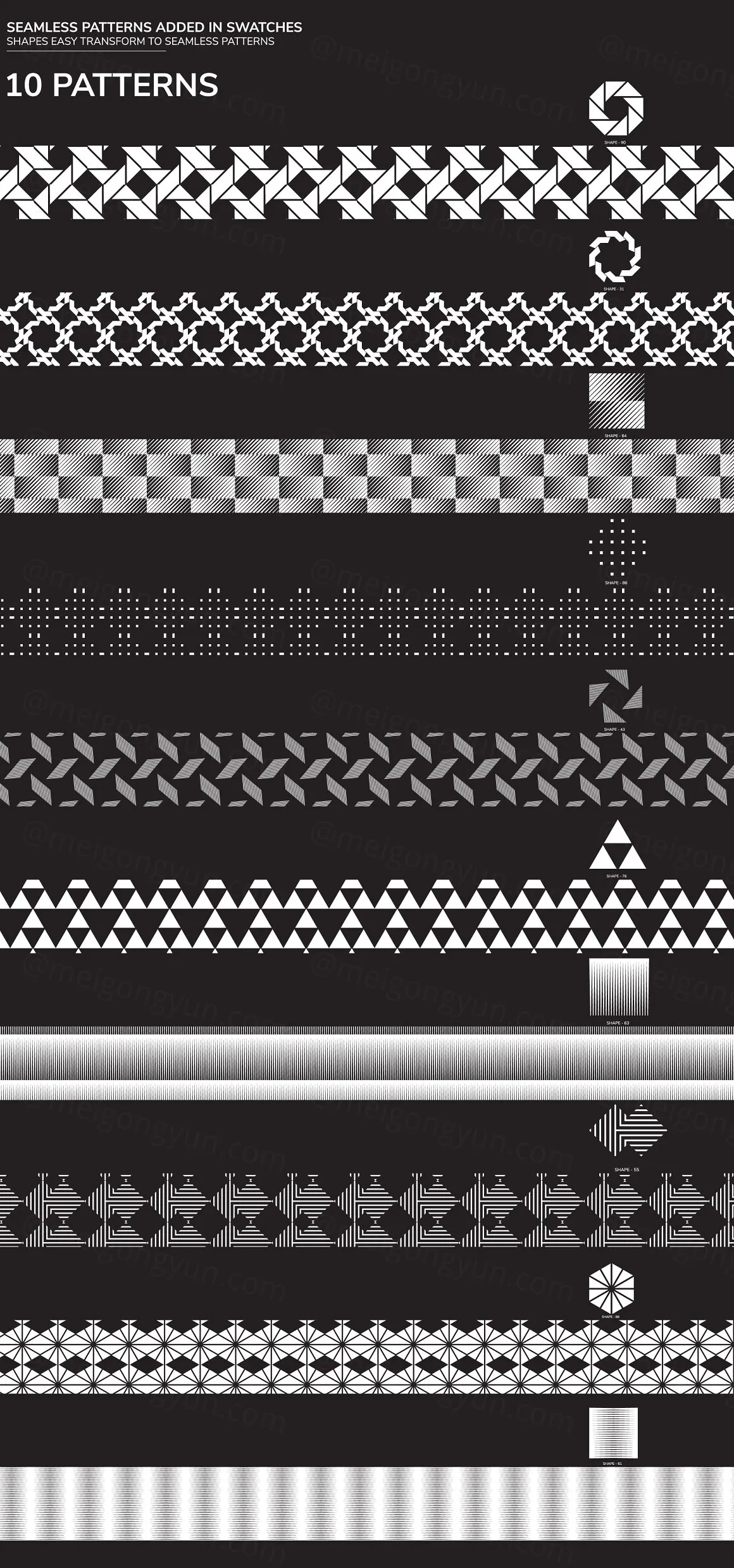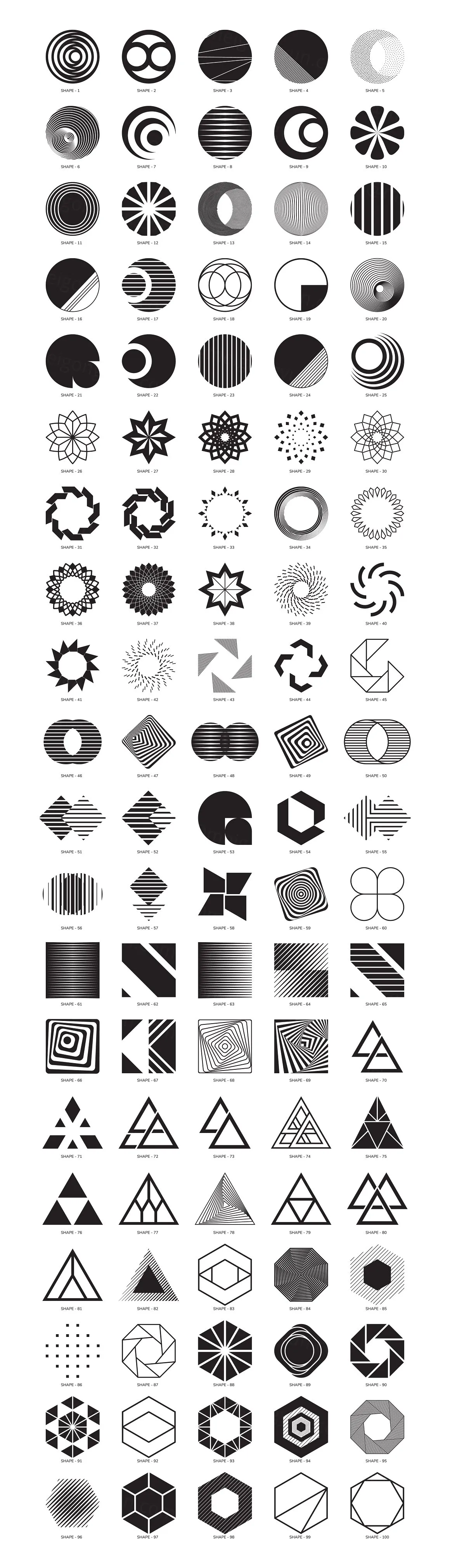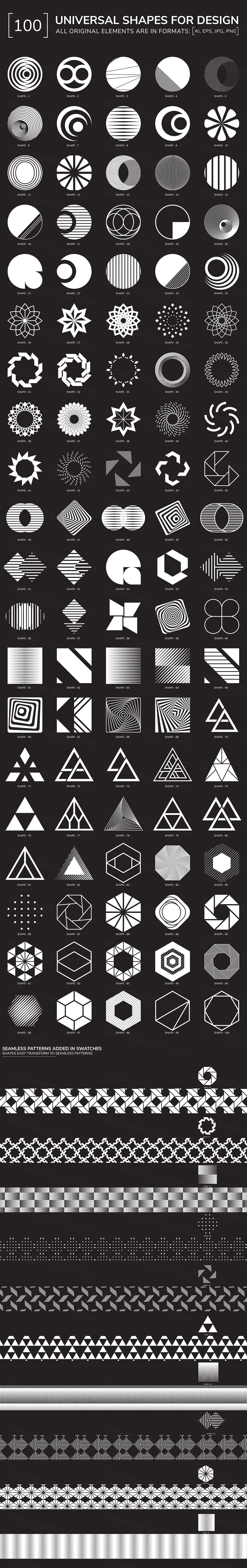 潮流未来派几何抽象形状&无缝拼接图案矢量素材合辑 100 geometric shapes Part 2