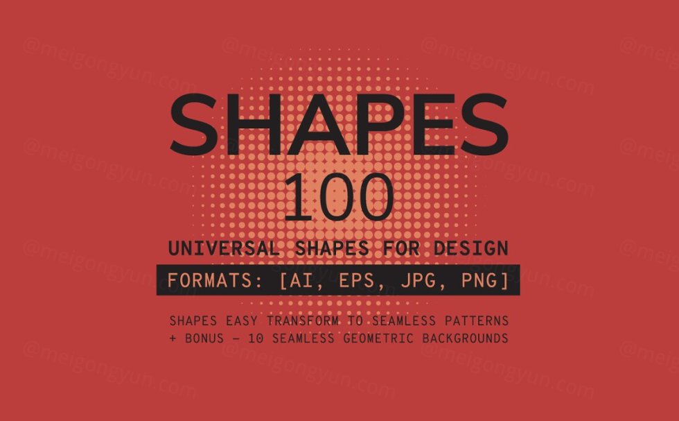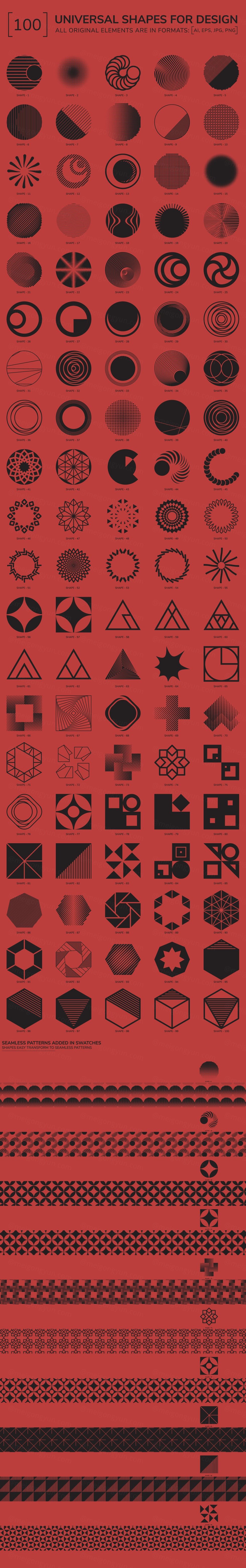 100 种形状(EPS10、JPG、透明 PNG - 5000x5000 像素、300 dpi)、RGB