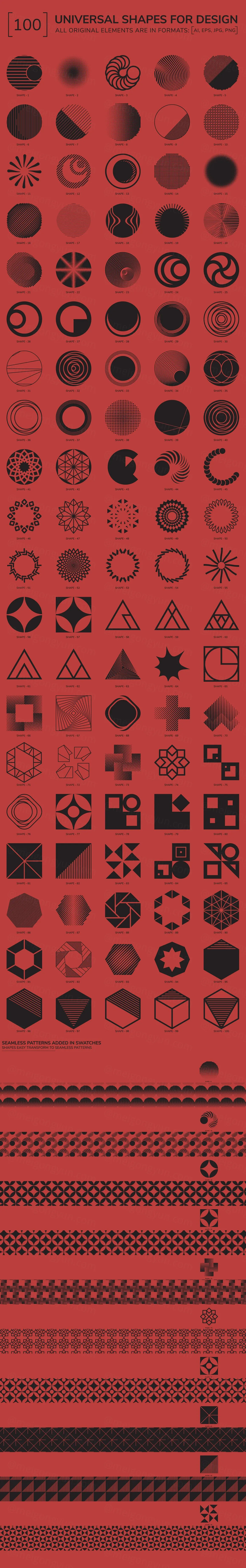 潮流未来派几何抽象形状&无缝拼接图案矢量素材合辑 100 geometric shapes Part 3