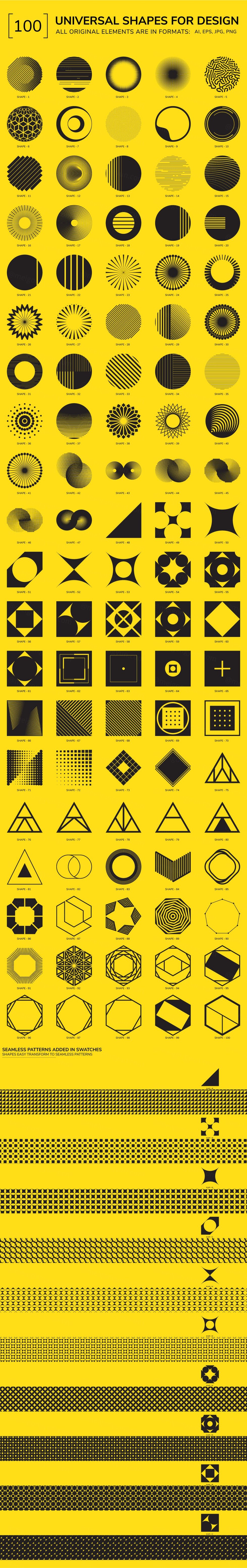 100 种形状(EPS10、JPG、透明 PNG - 5000x5000 像素、300 dpi)、RGB