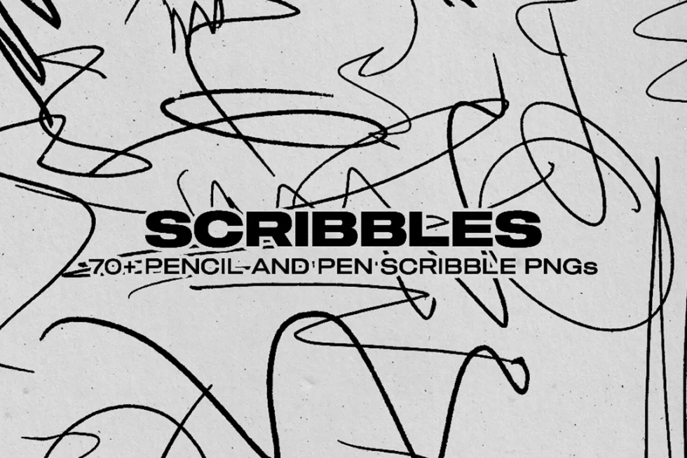 70 多种笔和铅笔涂鸦以 1200dpi 的透明度扫描,易于拖放到您的作品中!