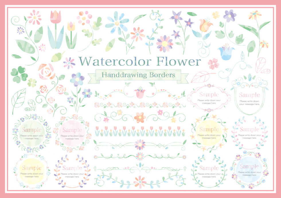 水彩花卉边框线条AI矢量素材合辑 Watercolor Flower