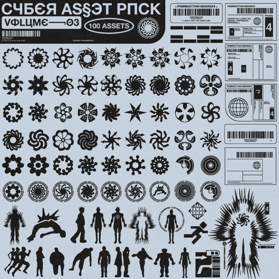Y2K千禧风复古赛博朋克复古未来派酸性艺术装饰元素大合辑 CYBER ICON BUNDLE