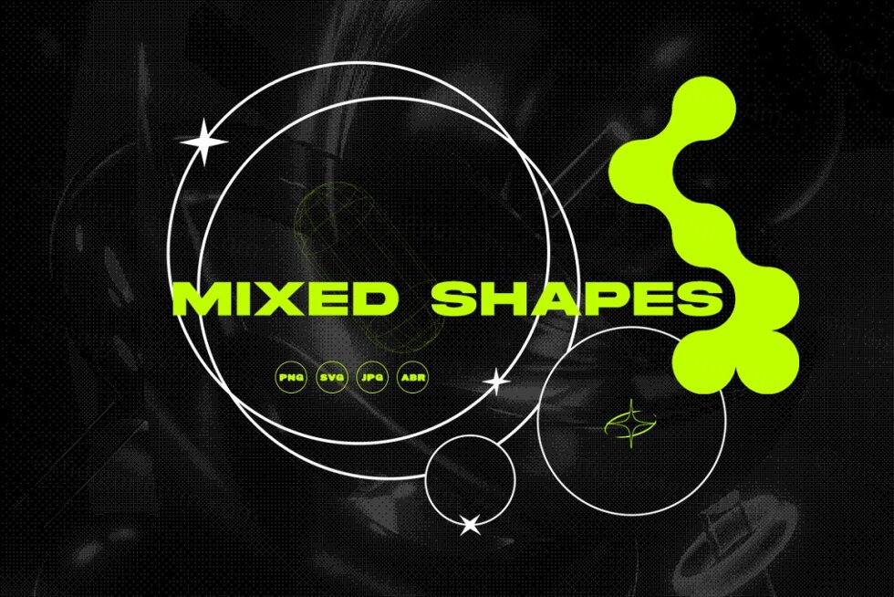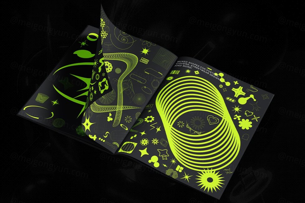 此产品下载包含 452 个文件。该套件的灵感来自 Y2K、抽象、科幻和几何形状和图形。使用示例:海报、专辑封面、贴纸、徽标元素、街头服饰设计。
