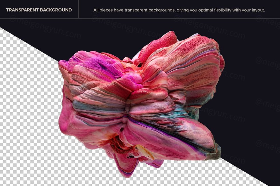 这些透明背景上令人惊叹的 3D 形状是为您的下一个项目带来现代抽象感的完美方式。