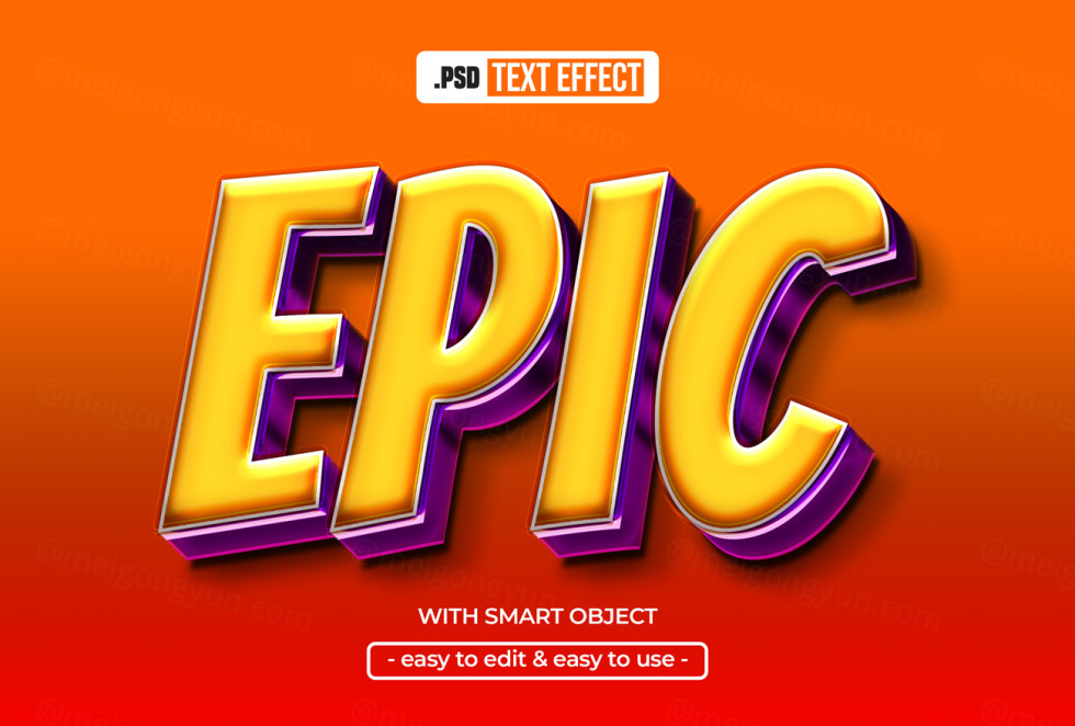 高质量紫色金色3D金属光泽立体文字特效PSD模板素材 Epic text style effect