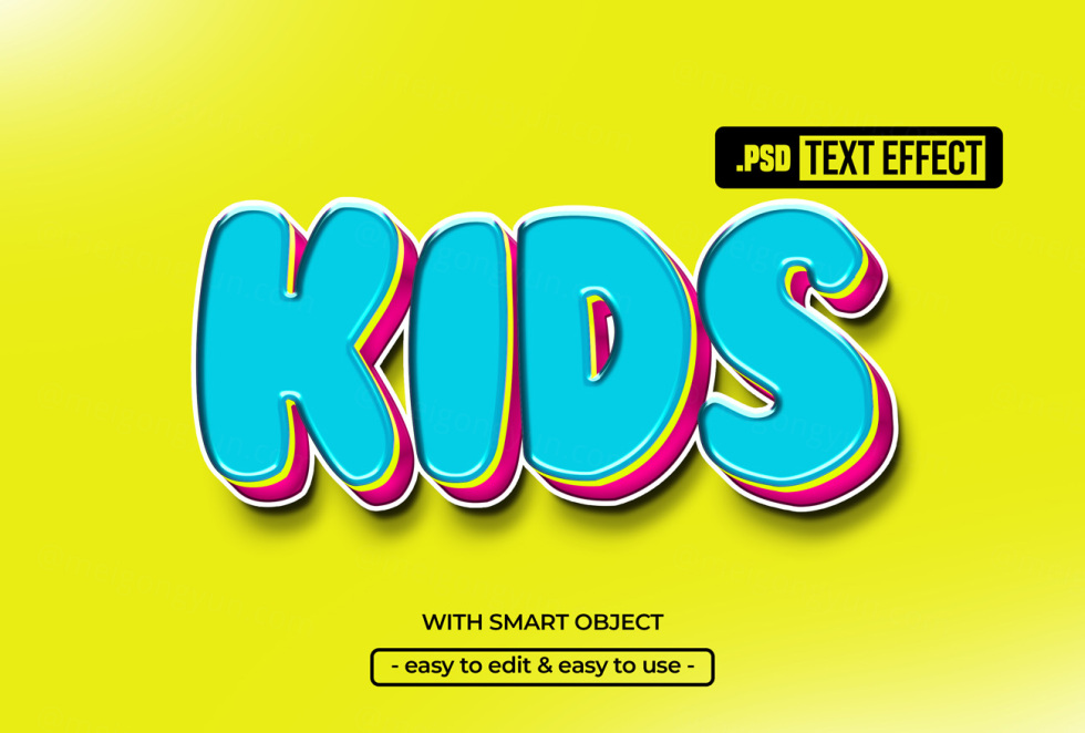 高质量3D卡通立体文字特效PSD模板素材 Kids text style effect
