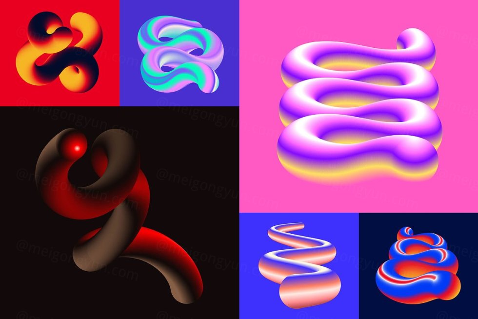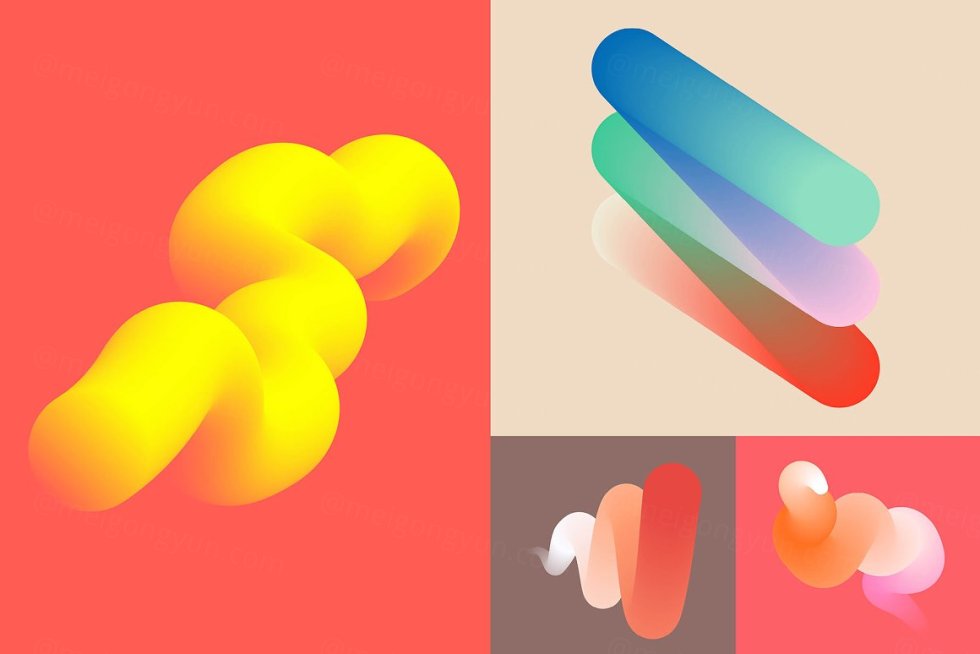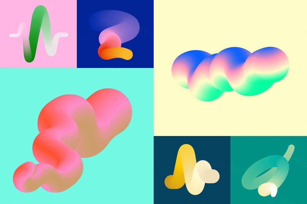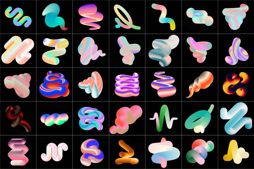 一组 70 个古怪、时髦和动态的设计元素,具有渐变混合效果