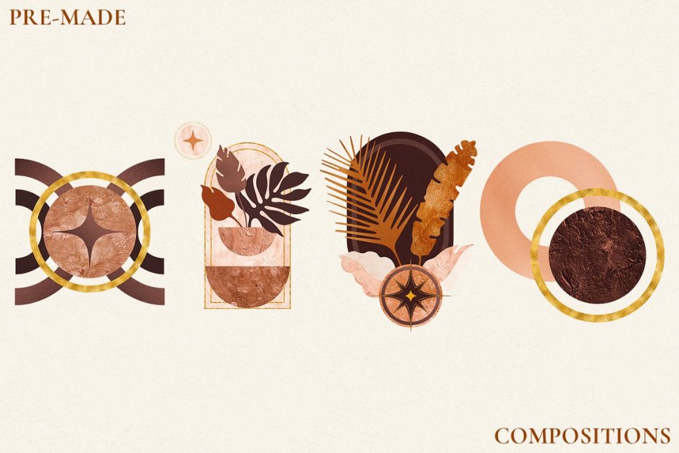 您可以将这些华丽而充满活力的图形用于各种设计、工艺和 DIY 项目,包括纺织品设计、包装、品牌和网页设计。该系列非常适合创作精美的拼贴画、现代抽象墙艺术、美术海报和印刷品。轻松设计适合夏季和秋季婚礼的波西米亚风格婚礼请柬和文具。为徽标和名片添加颜色和纹理,创建时尚的外观手册和情绪板、社交媒体图形等等!