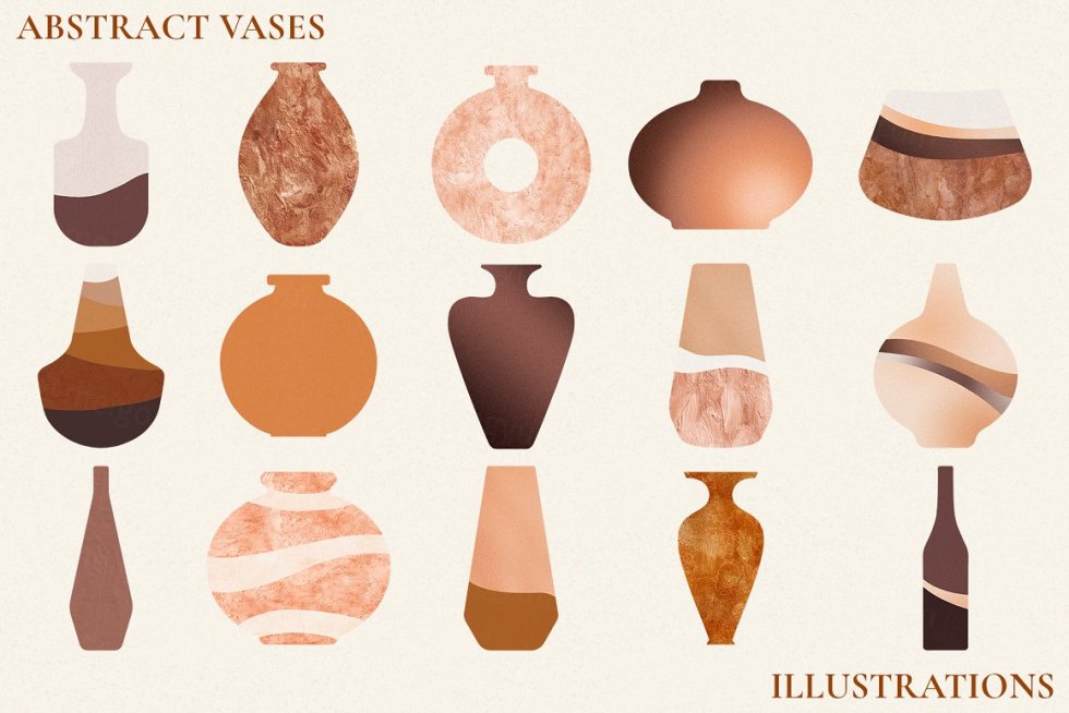 纹理以 JPEG 格式提供。插图以矢量 AI 和 EPS 以及光栅 PNG 格式提供。PNG 文件有两个版本:纯色版本和纹理版本,其中包含一些包含丙烯酸、纸张和渐变纹理以及自然粗糙的边缘,使这些插图具有真正的手工制作感觉(请参阅预览图像)。还包括 12 个预制的抽象作品。
