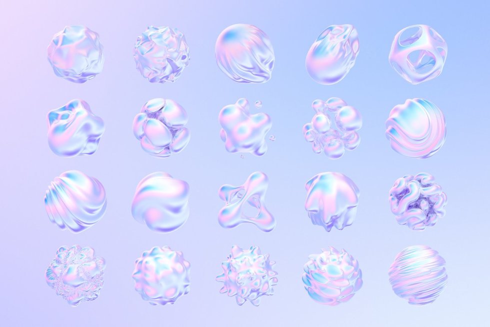 20 种不同的3D 液体风格渲染形状