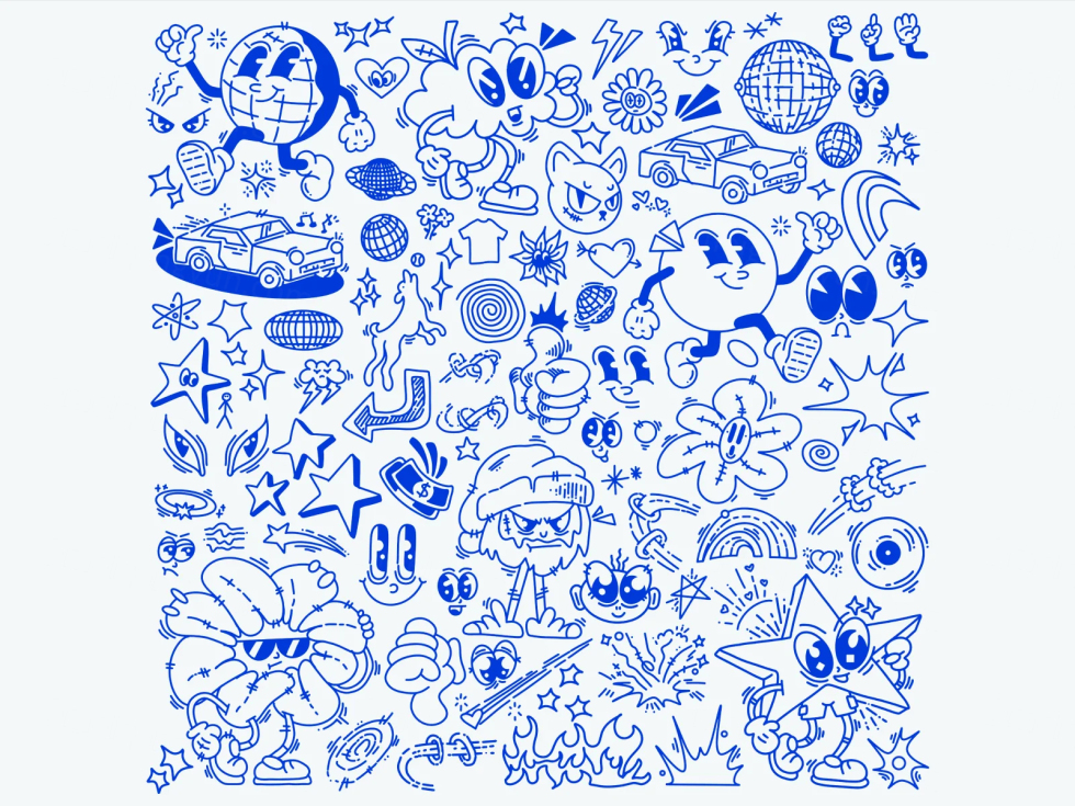 高质量复古Y2K千禧年日式动漫独特卡通人物矢量插画元素设计素材 Cartoon Asset Pack