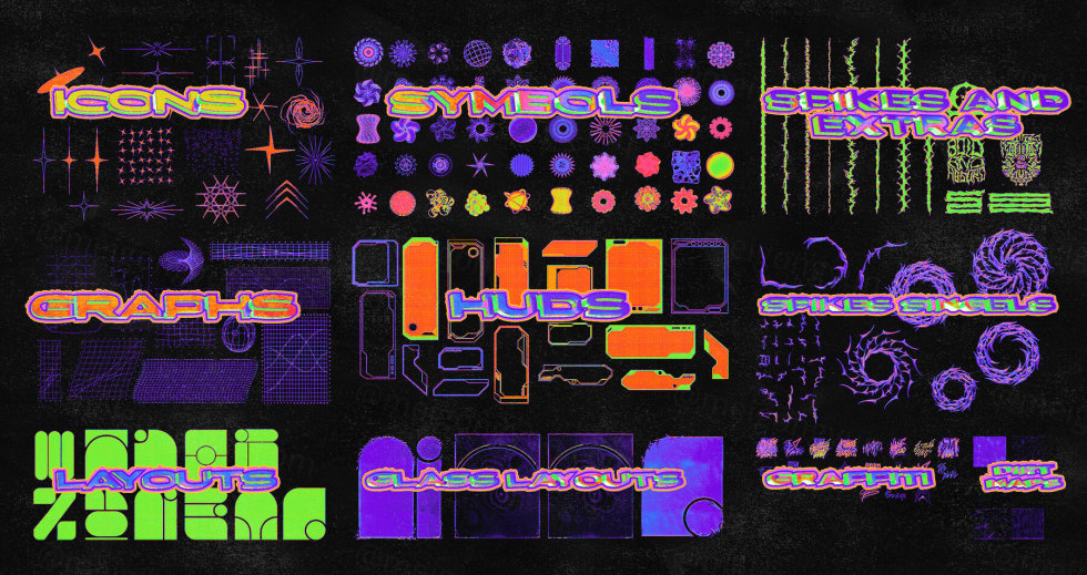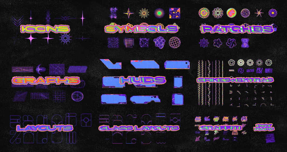 3D GRAPHIC PACK_01 - 超过 150 个图形元素。