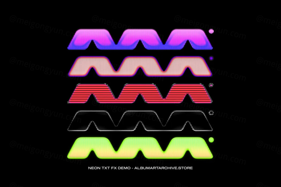 NEON TXT FX是100 种Adobe Photoshop 图层样式,创建用于设计项目中的文本图层和排版。NEON TXT FX 可应用于 Adobe Photoshop 中的任何图层,但专为在文本上使用而设计。 图层样式缩放到文档大小,此包中的图层样式制作为 3000×3000(专辑封面的标准尺寸) 图层样式采用 .ASL 格式,可以在打开 Photoshop 时双击或单击“样式”面板中的“导入”来安装