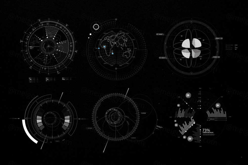 具有无限可能性的复杂 HUD 元素。包中还包括预制元素。非常适合科幻和未来电影、视频游戏和动画。