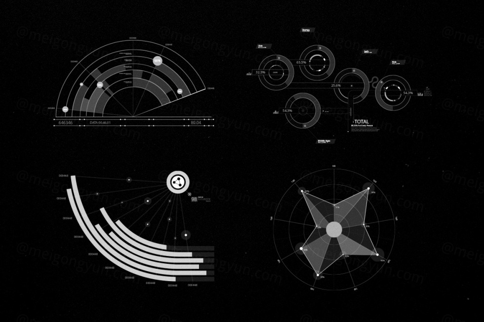 高质量赛博朋克科幻未来电影游戏HUD界面科技元素 Complex HUD Elements