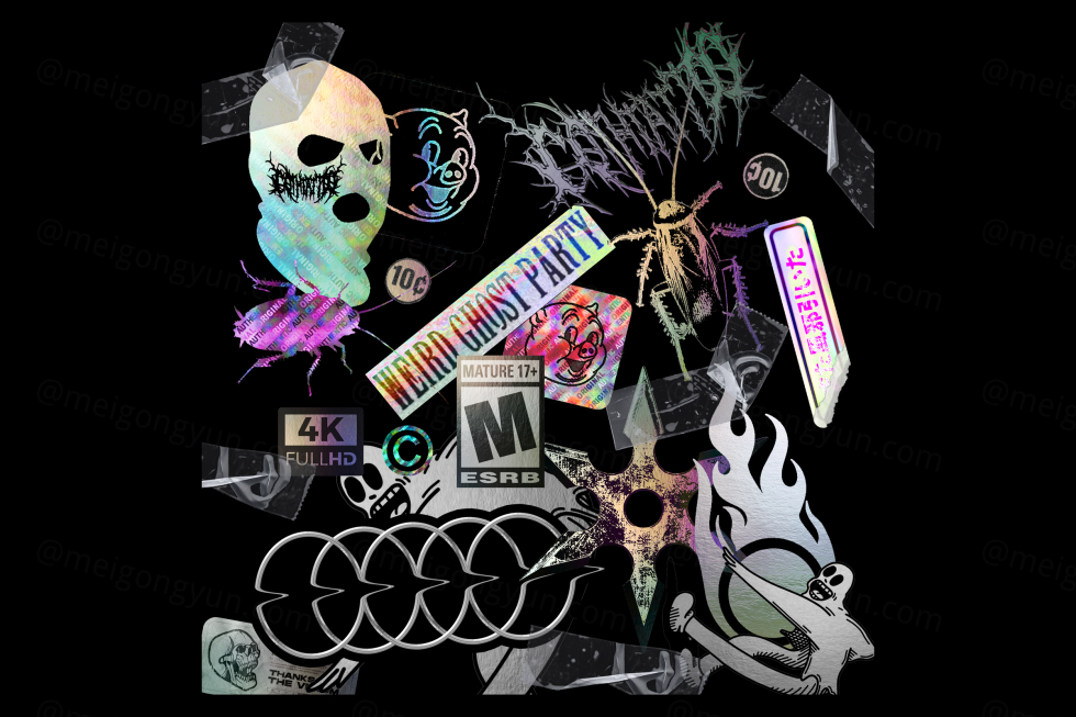 + 20 个可定制的全息贴纸 + SCUM TRASH FONT FREE + 4 艺术封面纹理