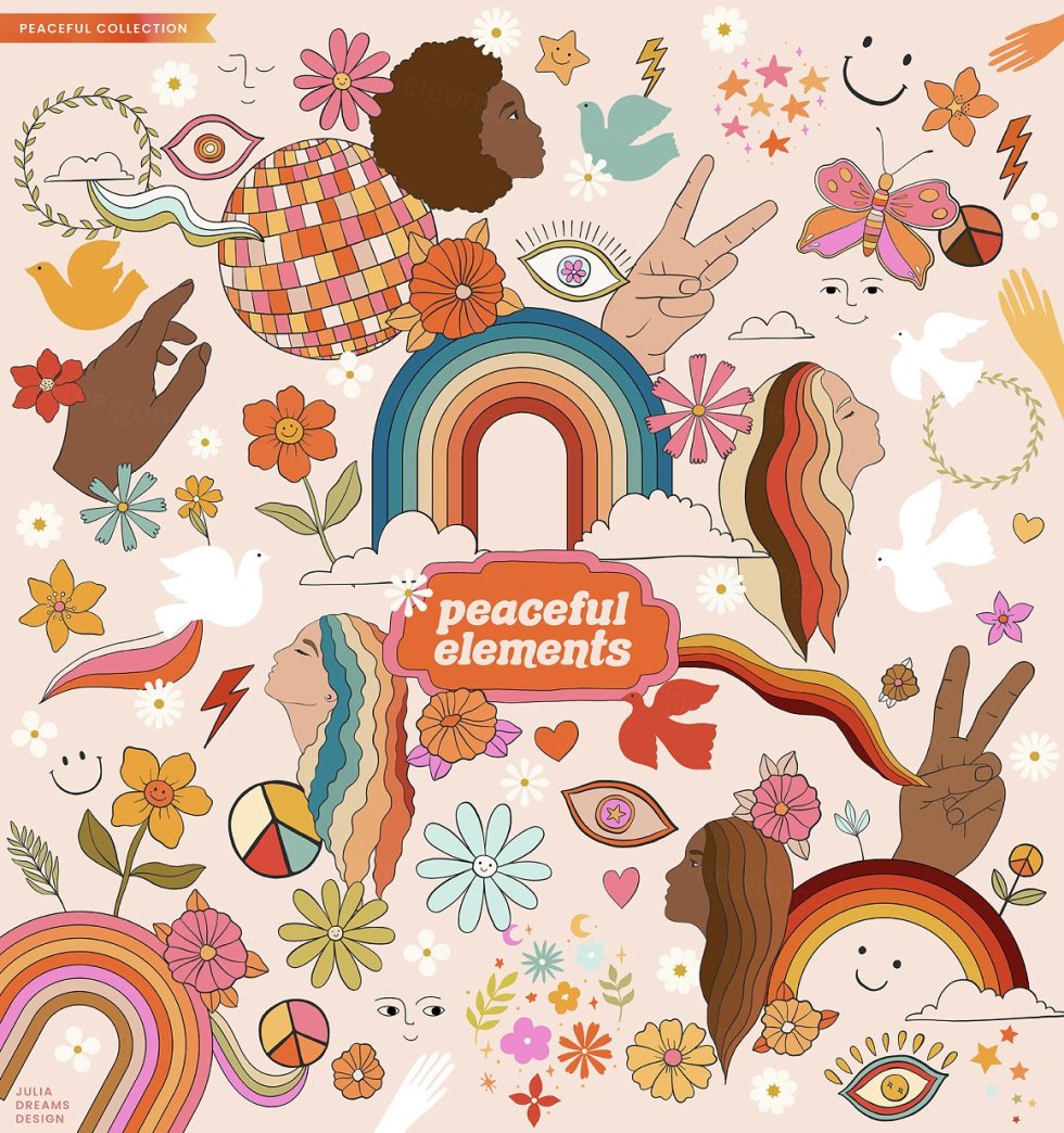 Peaceful Collection 非常适合徽标、海报、卡片、品牌、封面、礼品、社交媒体帐户、包装纸、壁纸、织物、剪贴簿、贴纸、网站、博客、邀请函等等!