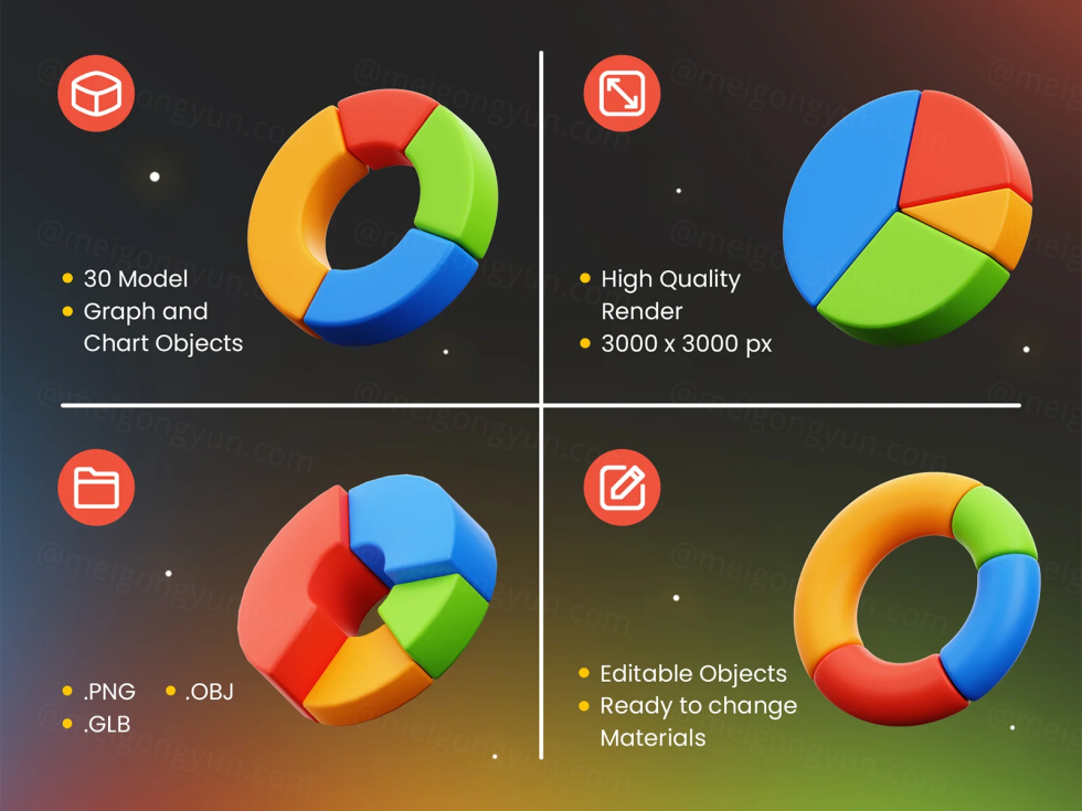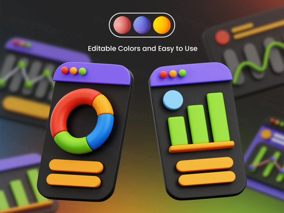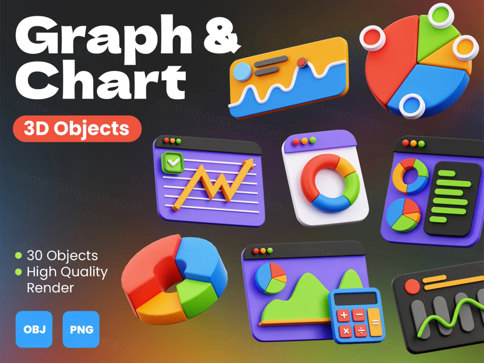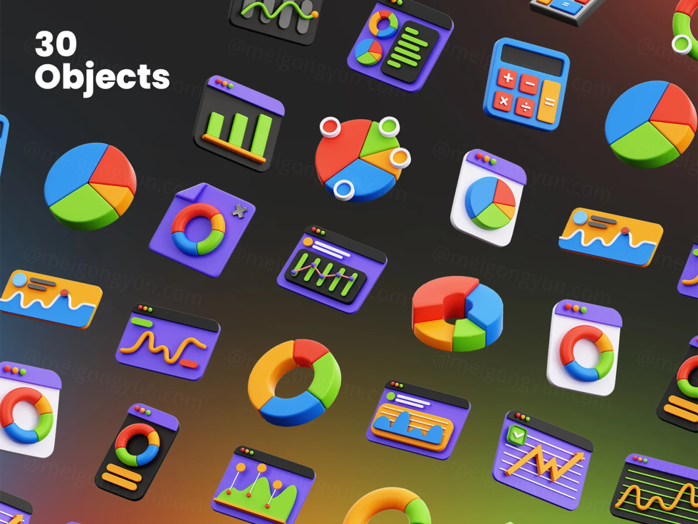一组 30 张明亮多彩的 3D 插图,使您的项目或演示文稿引人注目且易于理解 图形和图表 3D 独特的可编辑对象可用于设计需求、动画、网页设计、UI 设计、演示幻灯片、海报等。完美地使您的设计不仅信息丰富,而且视觉上独特。