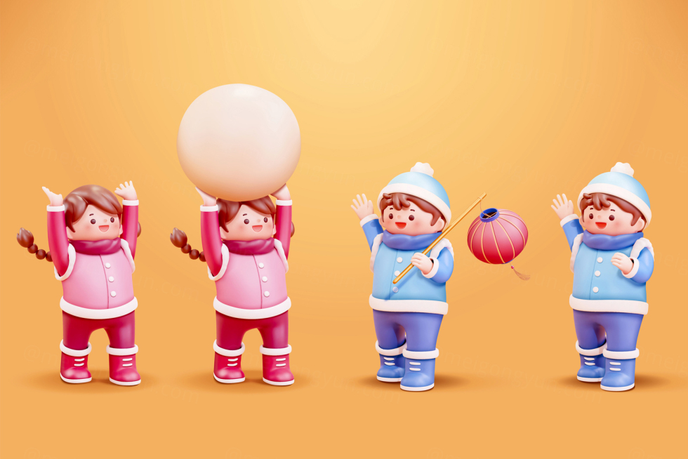 2024年男孩女孩新春龙年中国传统春节新年矢量插画素材
