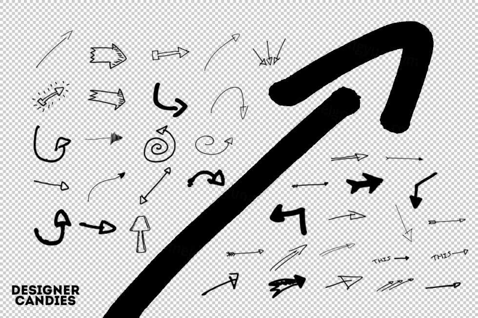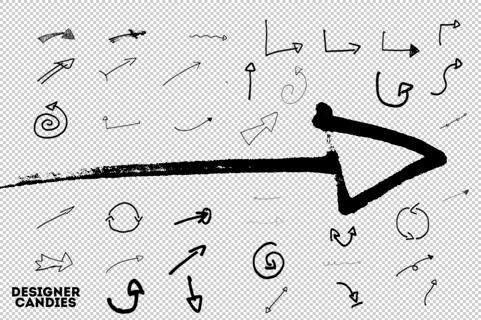 手绘光标箭头PS笔刷合集包 80 Hand Drawn Arrows