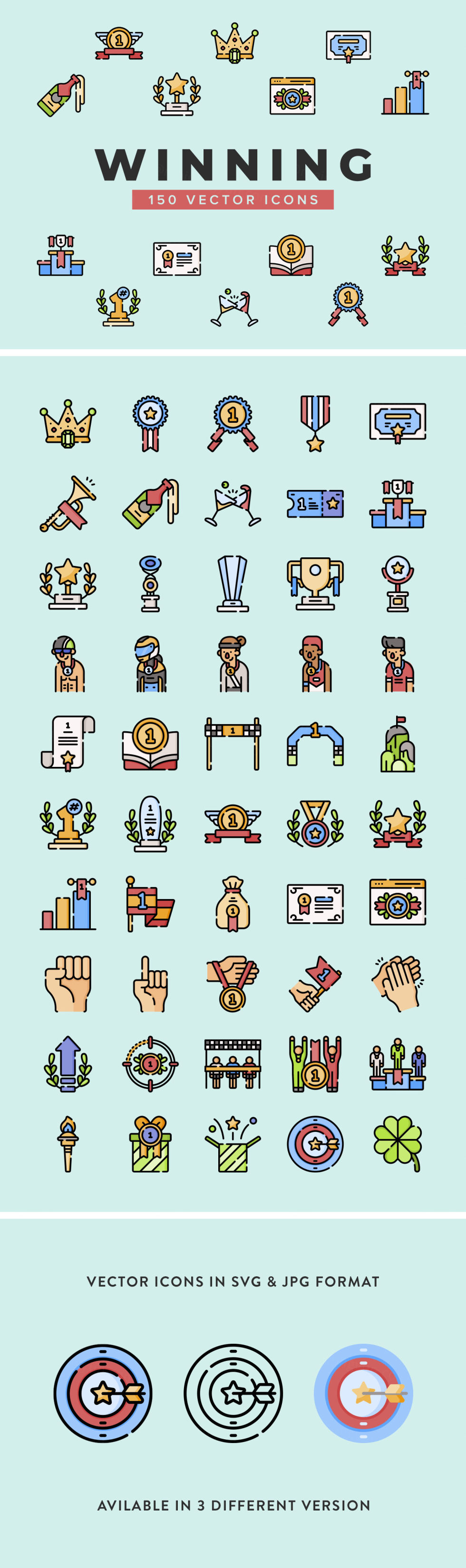 我们确信你知道胜利的滋味,但是你曾经用矢量图标的语言表达过吗?这是你为你的项目下载这些免费收藏的机会。 这一套充满了50个矢量图标,纪念胜利的美好感觉!有三种版本和两种格式(SVG和JPG)可供您处理任何主题工作流时使用。就像Freepik的任何图标一样,它们很容易定制,使用起来也很有趣!用高质量的图标祝福你的设计,呼吸冠军的能量!