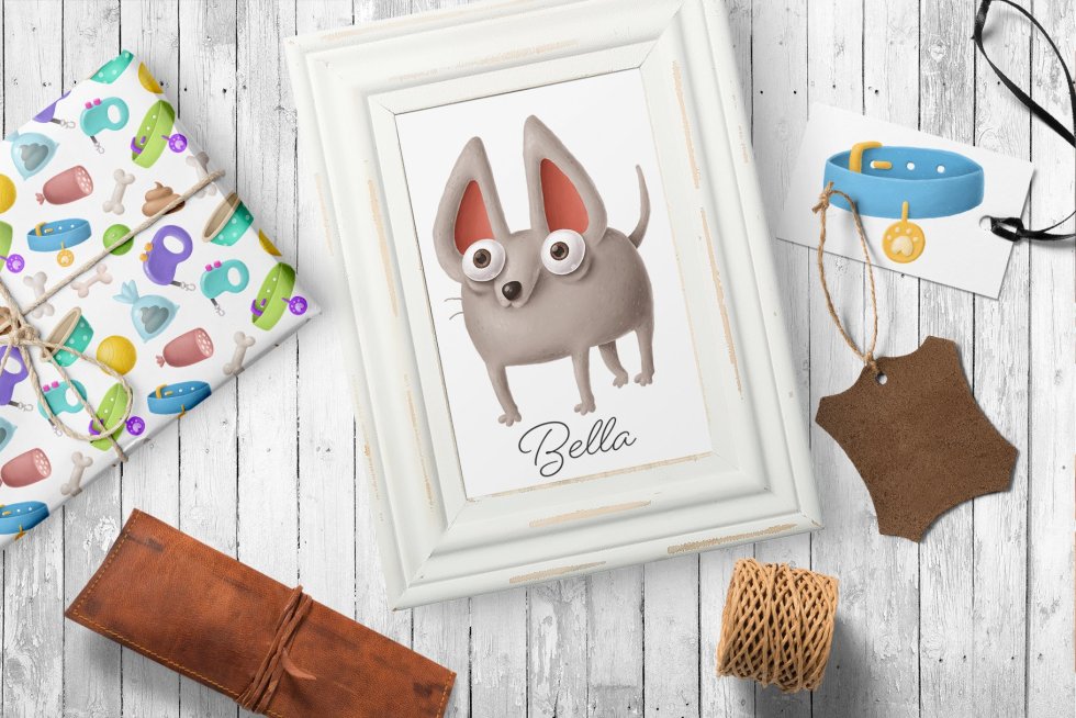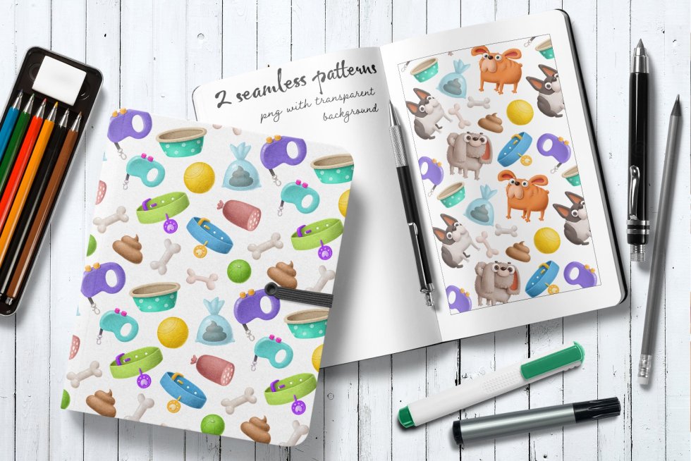 您会得到: -5带有PNG格式的狗字符,透明背景为600dpi(大小约为4000x4000px) -11狗素材(骨头,碗,项圈等),PNG格式,透明背景600dpi -所有在一层PSD -2无缝图案png 6000x6000px 300dpi PNG文件与大多数图形程序兼容,并且可以与任何版本的Adobe Photoshop和Illustrator一起使用。 不包括字体!