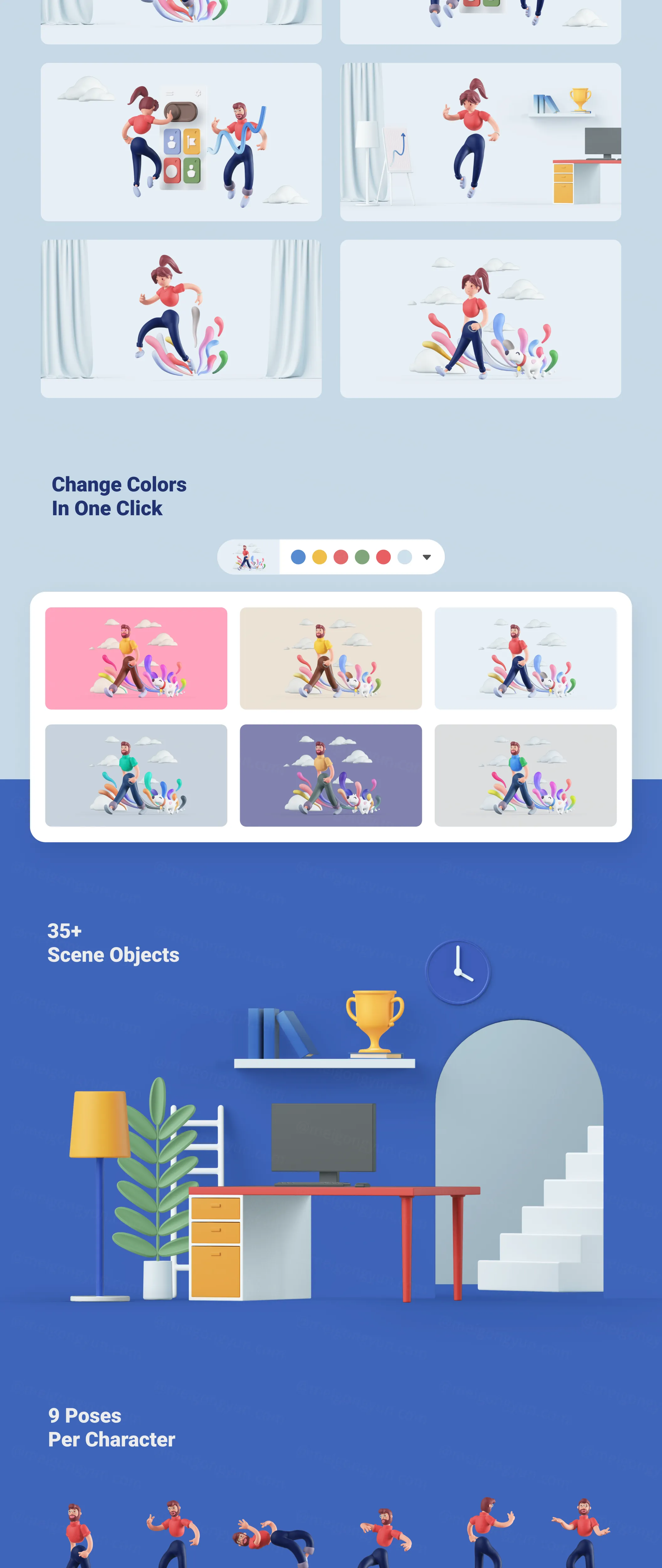 栩栩如生的3D人物插画素材包 3D Character Pack