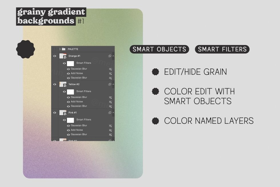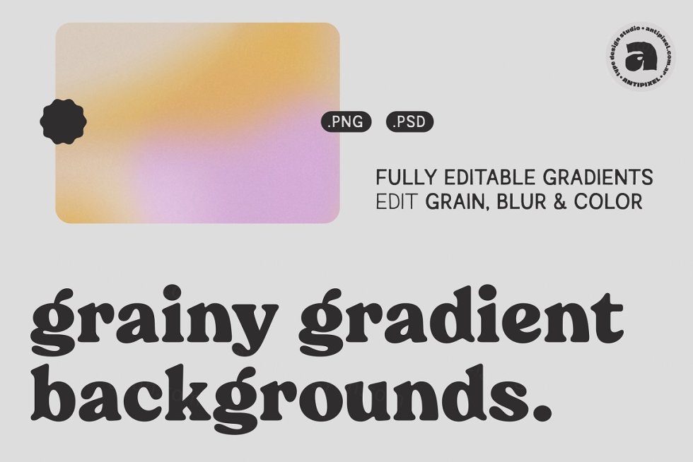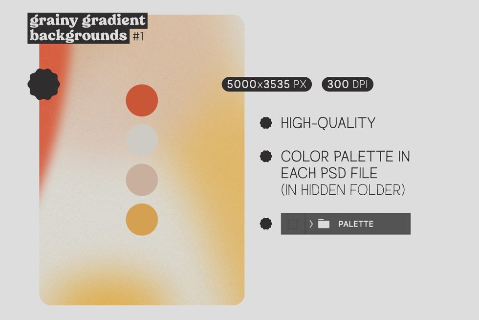 粒状渐变背景 #1 包括 15 个完全可编辑的粒状圆形渐变。它们采用 PSD 格式,可以轻松编辑颜色、模糊和纹理,以适应您的项目!