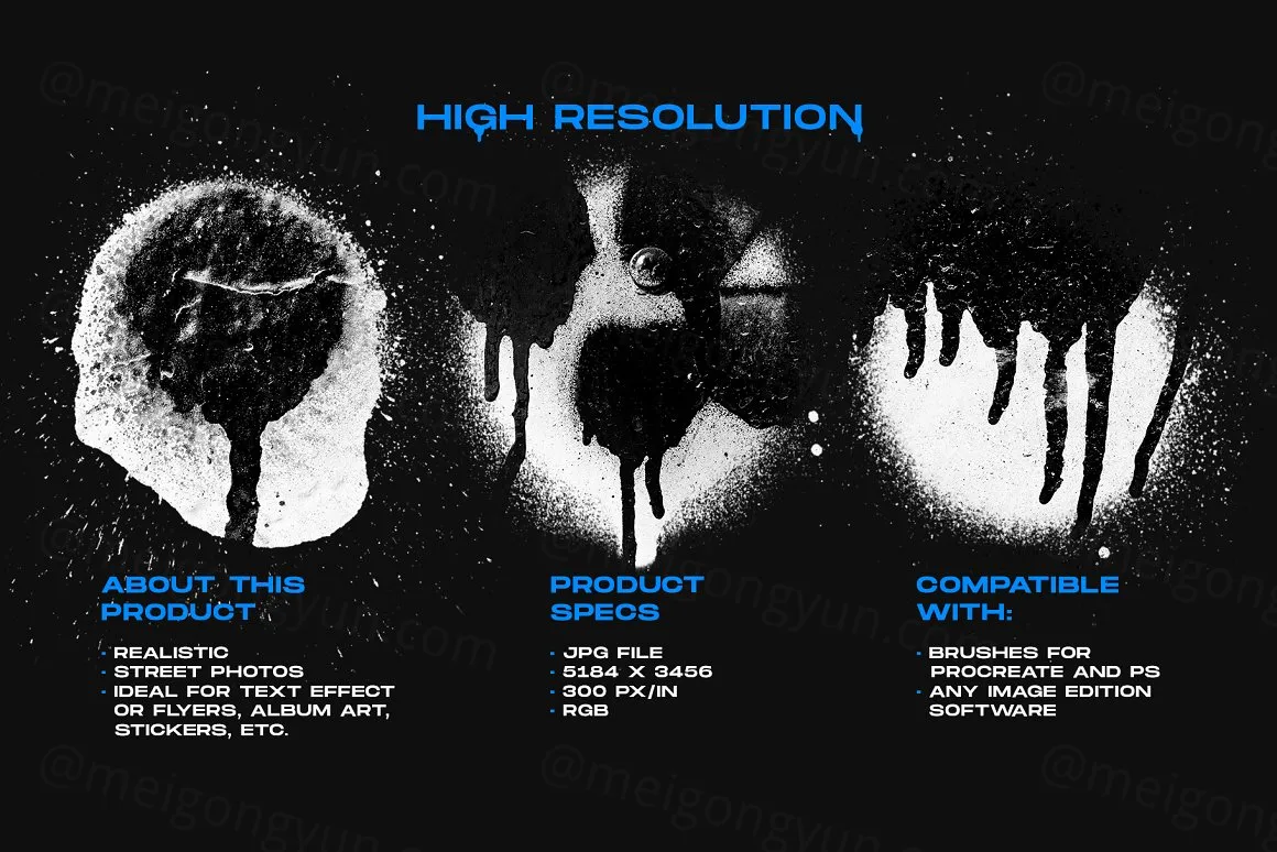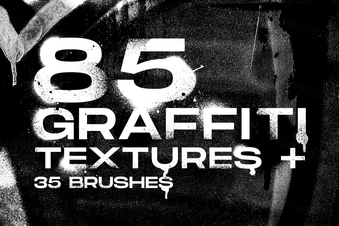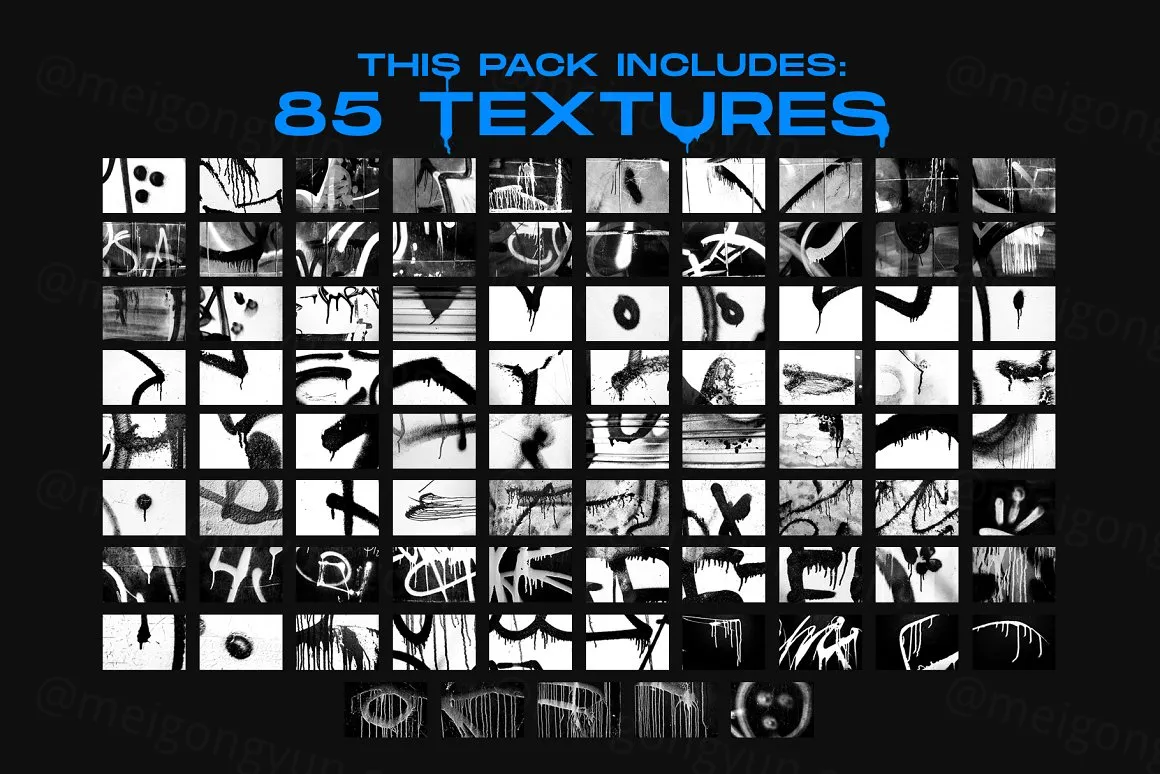 潮流涂鸦街头艺术恐怖粗糙灰尘沙粒纹理喷墨笔刷素材 Graffiti textures and brushes
