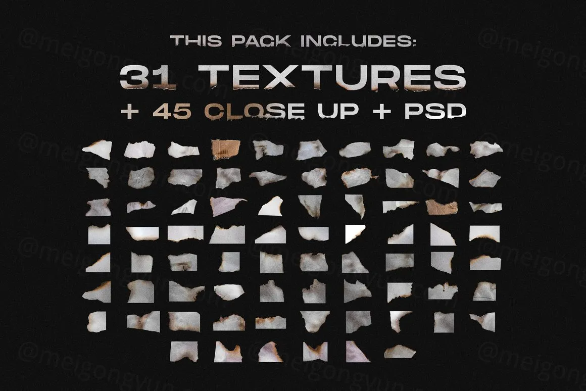 高分辨率复古仿旧燃烧撕裂烧毁烧焦的灰烬纸张纹理 Torn and burned paper textures