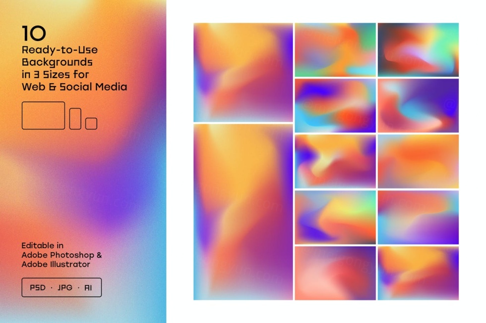 AI、PSD、JPG 格式的 10 种渐变背景: